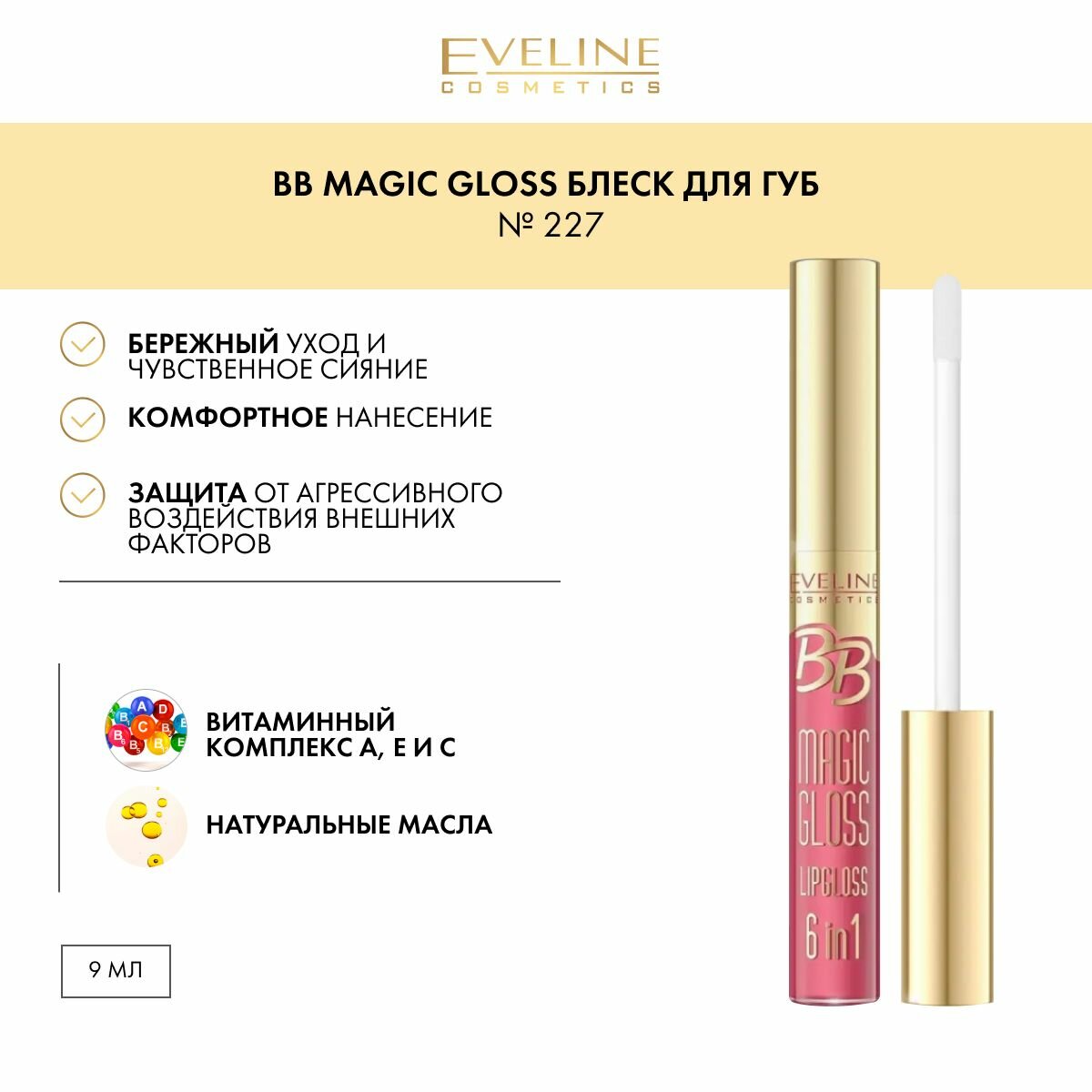 Блеск для губ, Eveline Cosmetics, BB Magic gloss, № 227, 9 мл