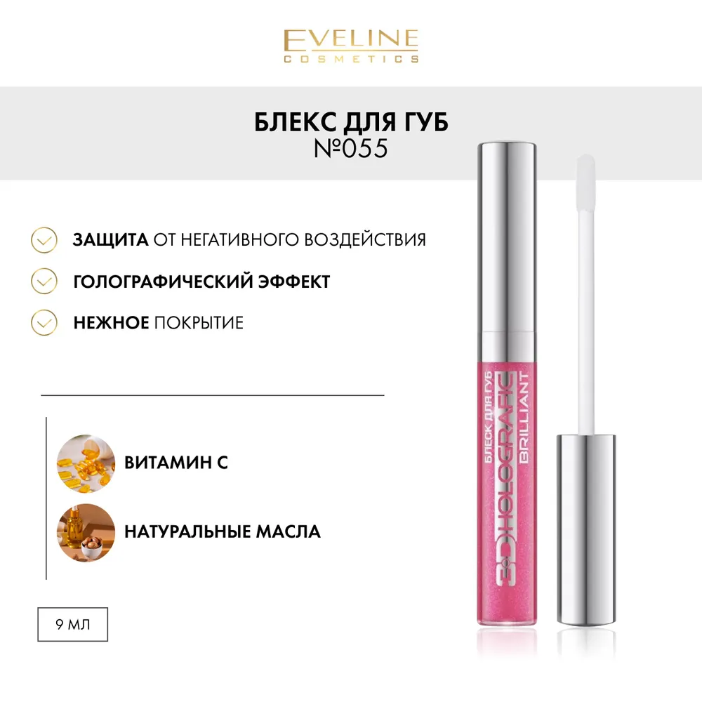 Блеск для губ EVELINE HOLOGRAFIC BRILLIANT №055 с голографическим эффектом, 9 мл