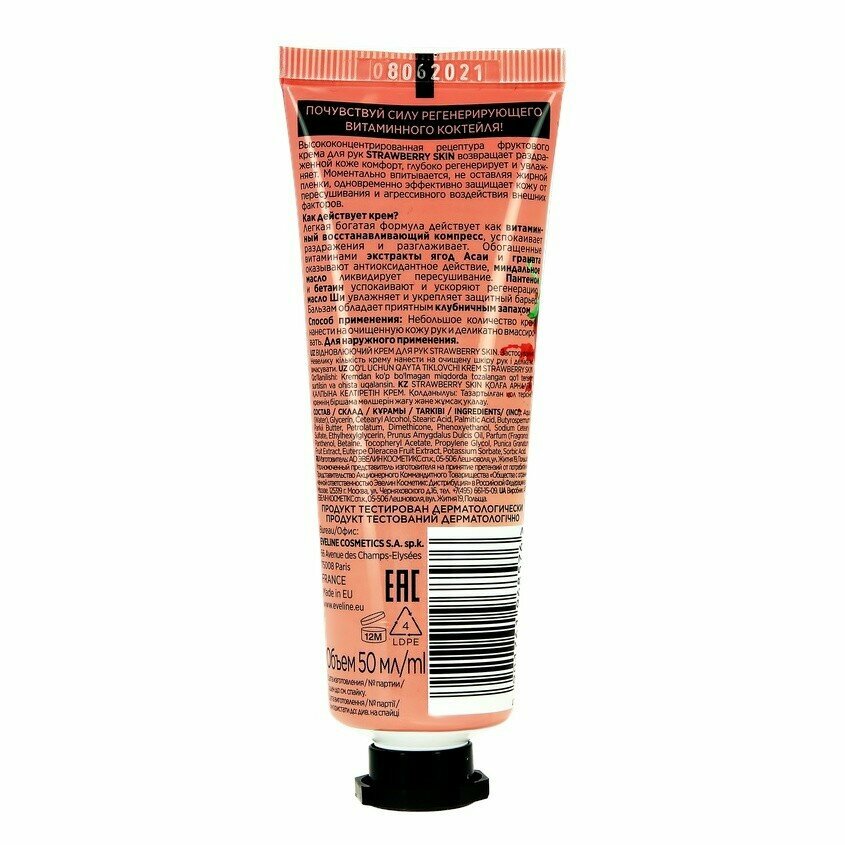 Восстанавливающий крем для рук EVELINE. - STRAWBERRY SKIN, 50мл