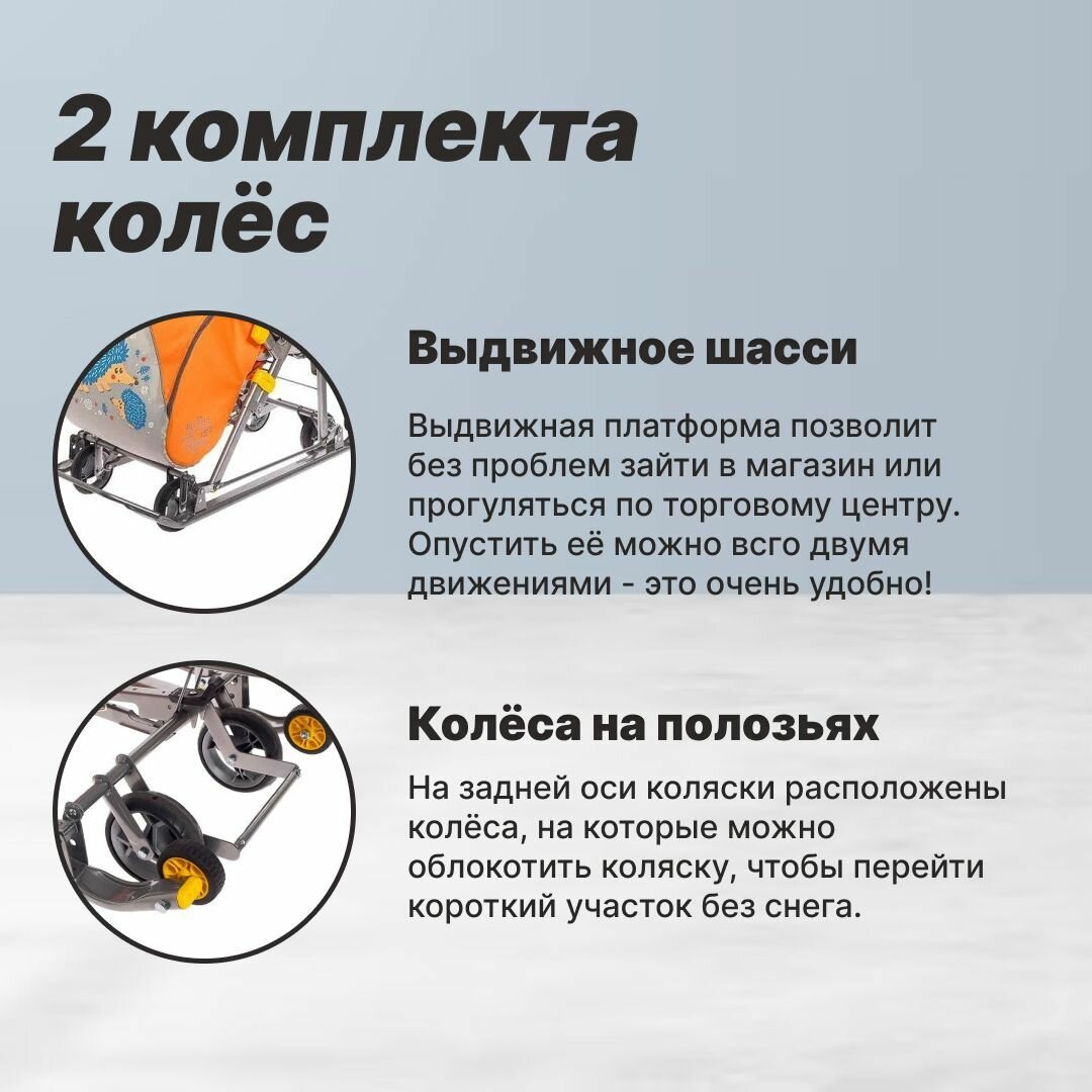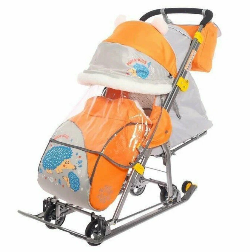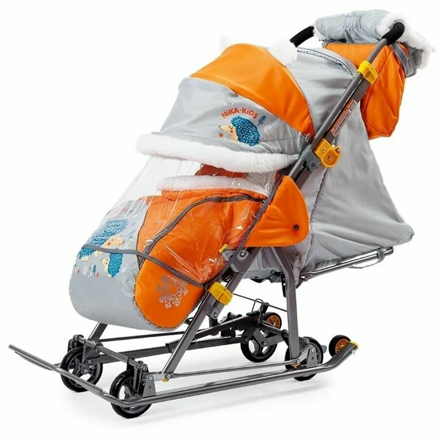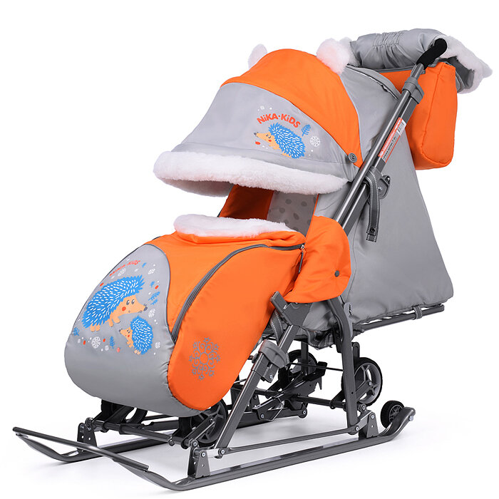 Санки-коляска Ника НД-7-6/13 Ёжик оранжевый/серый*2 НД7-6/13