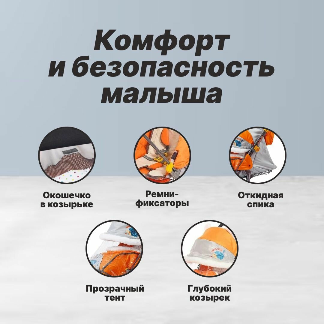 Санки-коляска Ника-детям 7-6 (НД7-6), с ежиком оранжевый/серый А