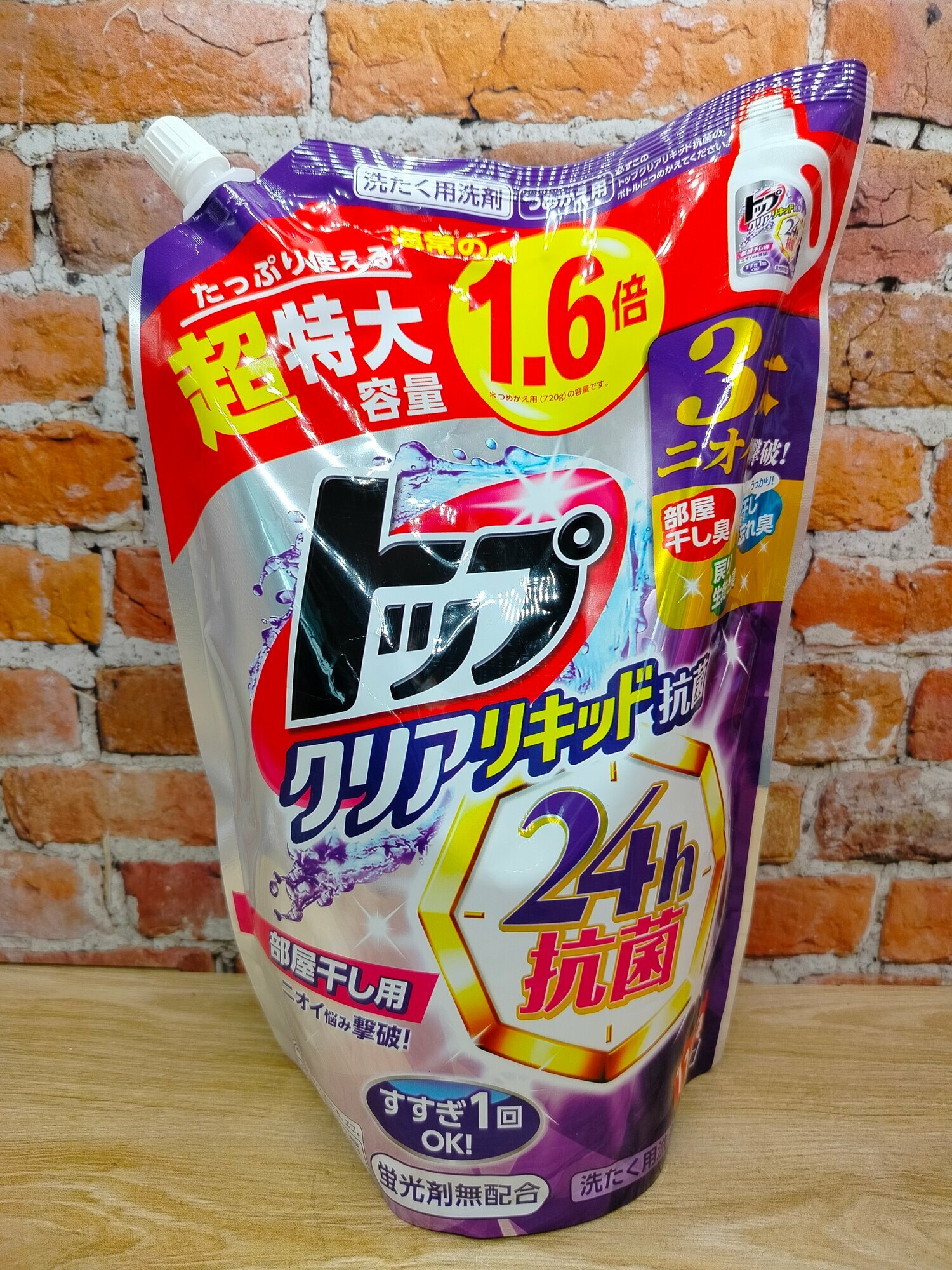 Lion top clear liquid жидкое средство для стирки белья с антибактериальным эффектом "топ-сухое бельё", мягкая упаковка, 1160 гр