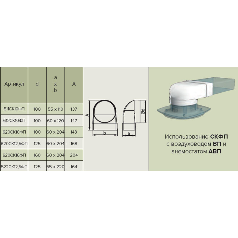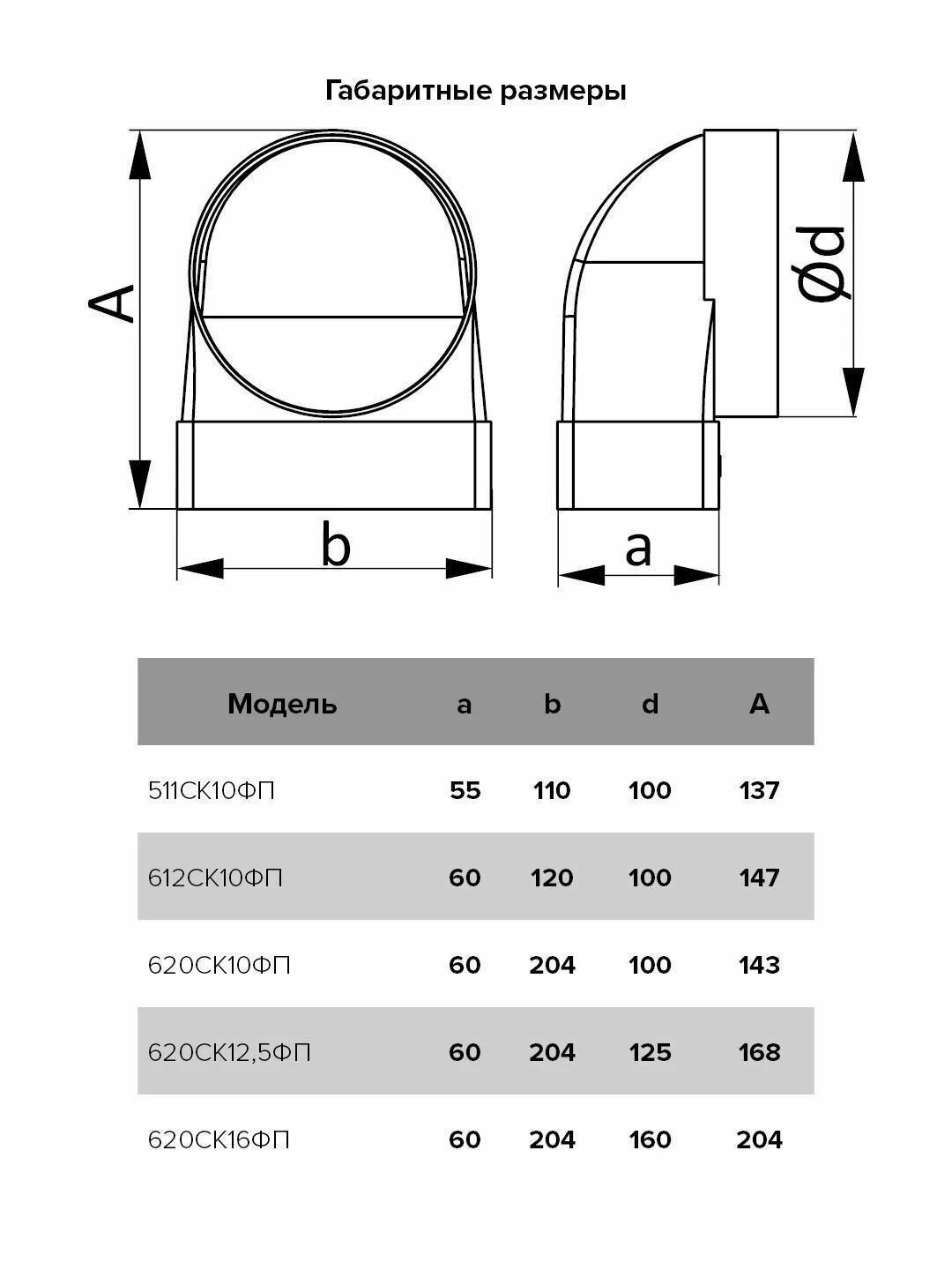 Соединитель для воздуховода угловой '620СК12,5ФП' ? 125 / 60х204