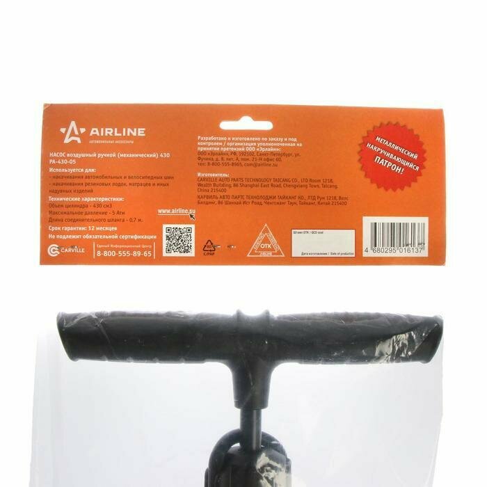 Насос воздушный Airline 430, ручной, 430см³, давление до 5атм, длина шланга 70см, арт. PA-430-05