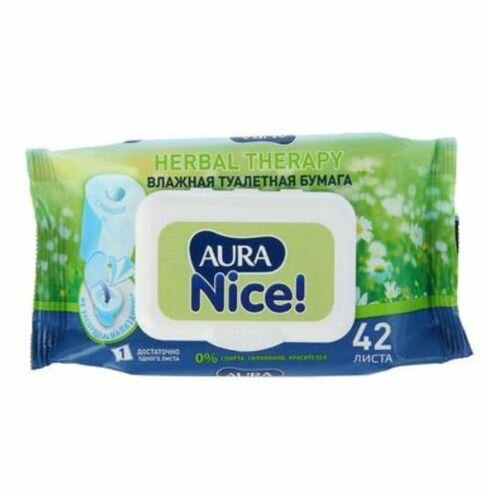 Влажная туалетная бумага Aura Nice Herbal therapy с ромашкой белая 42 лист., белый