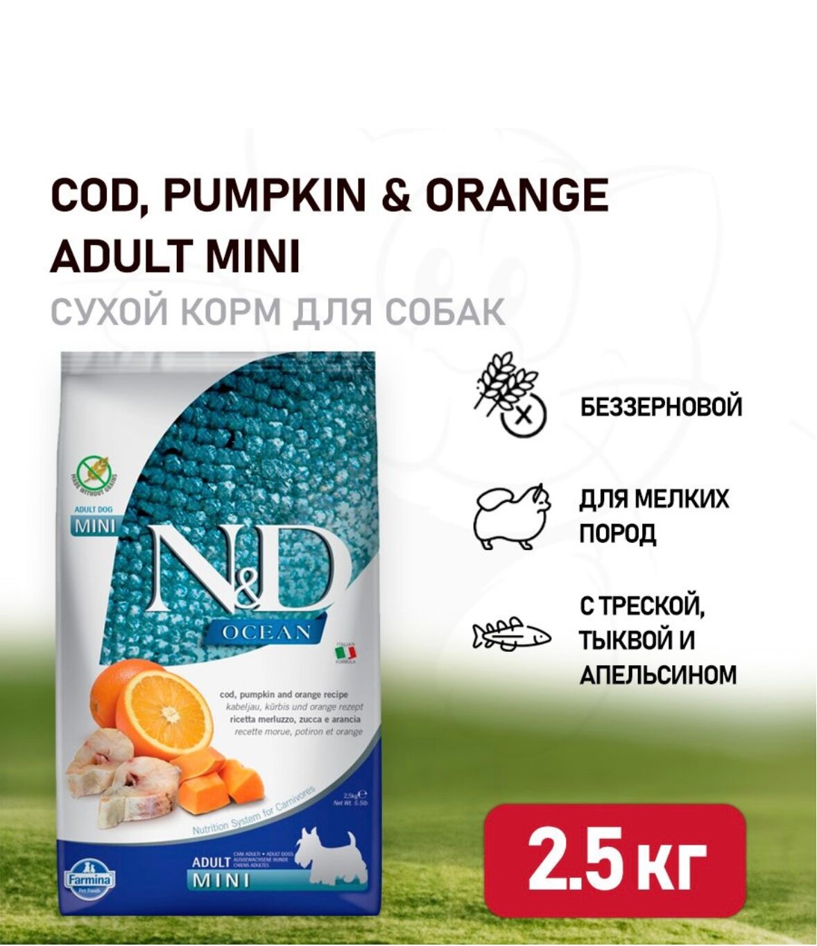 Farmina Н&Д Дог Океан для собак Мини пород Треска, апельсин, тыква 2,5кг / N&D Dog Ocean Codfish,Orange,Pumpkin Adult mini 2,5kg