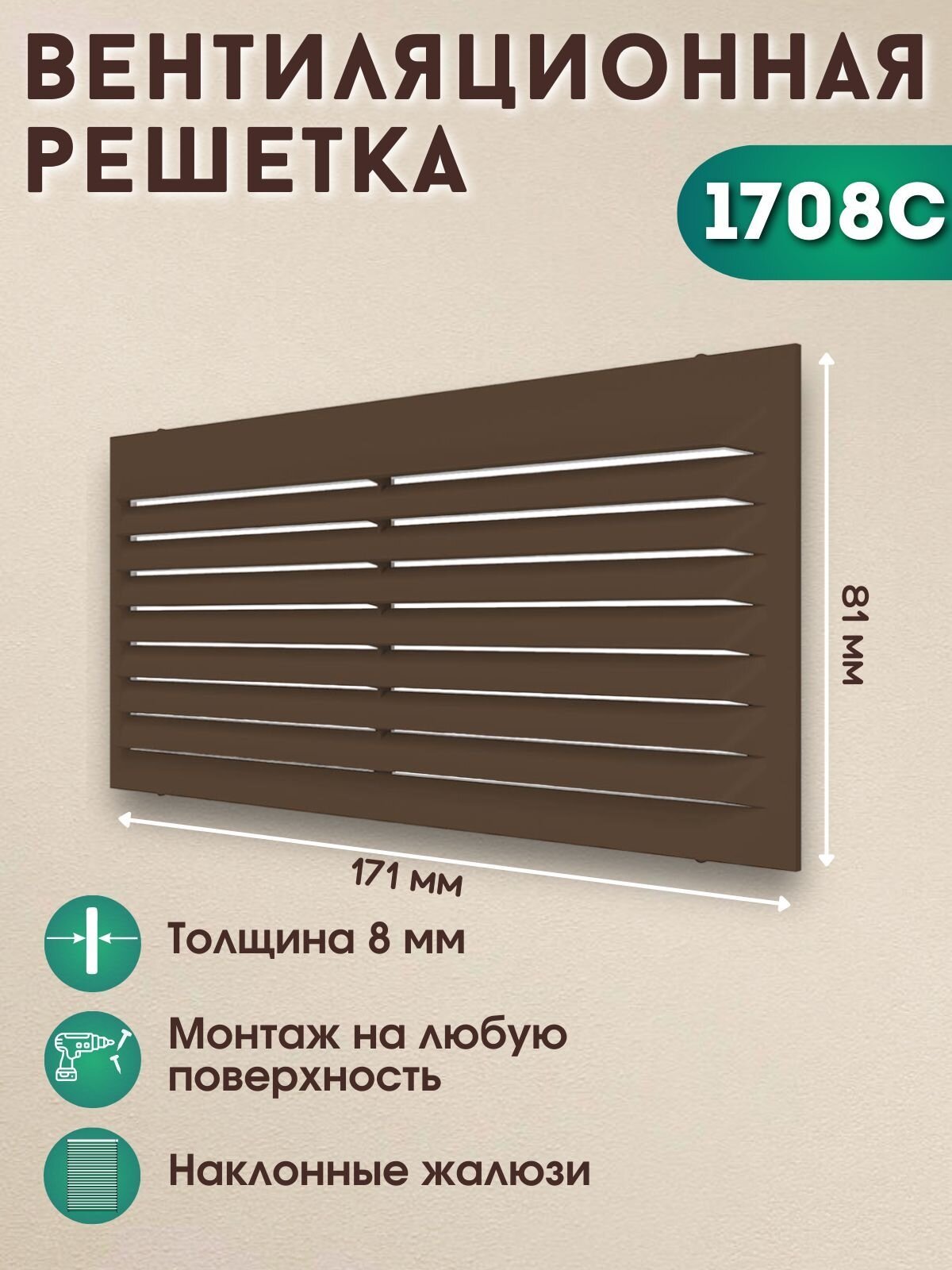 1708С кор Решётка вентиляционная ERA 171х81(h) неразъемная, ABS пластик, коричневая