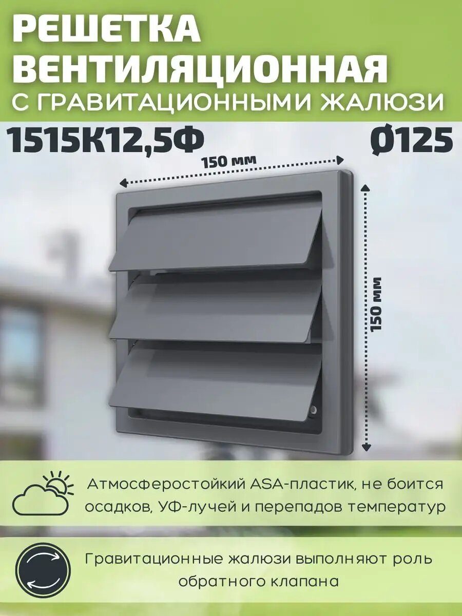 Решетка вытяжная с гравитационными жалюзи 1515К12,5Ф сер 150х150 d125 серая