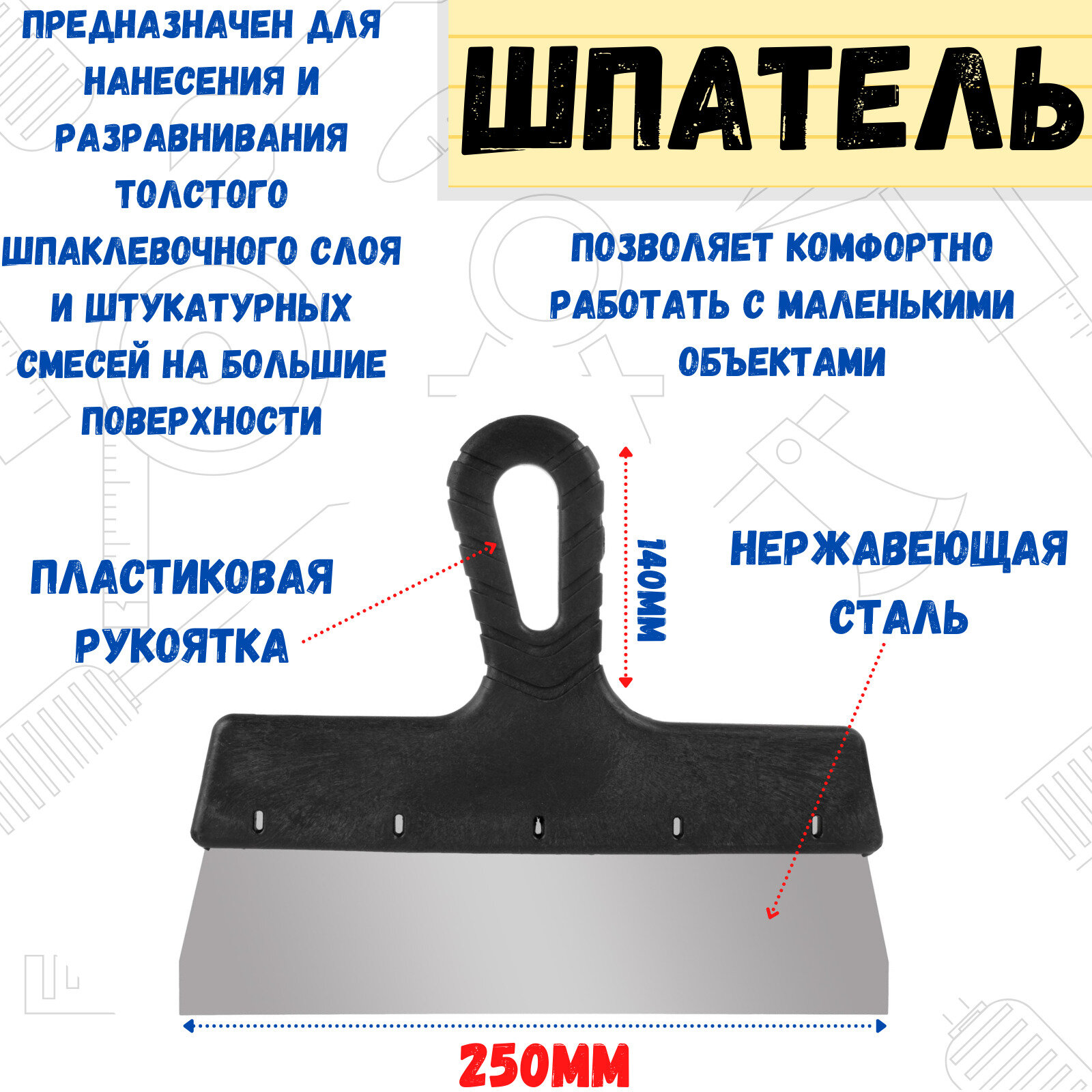 Шпатель фасадный Remocolor Шпатель фасадный "Мастер", прямой, нержавеющая сталь 0,4мм, пластиковая рукоятка, 250мм интересное:
