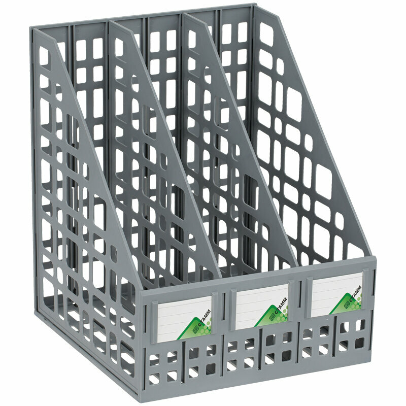 Лоток вертикальный для бумаги СТАММ сборный (3 отд.) серый