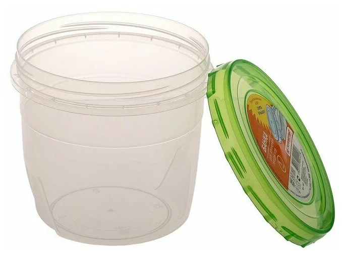 Прозрачная банка, видно содержимое Недостатки: Крышка, материал. Через несколько дней начала "снимать стружку", и куски пластика с крышки и с самой банки сыпятся внутрь. Использовать можно, но ТОЛЬКО не для пищевых продуктов! |