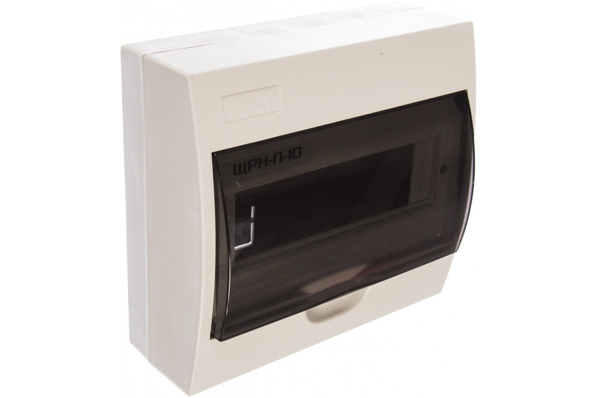 ЭРА SIMPLE бокс (корпус) пластик ЩРН-П-10 модулей навесной белый с дымчатой дверцей IP41 9067