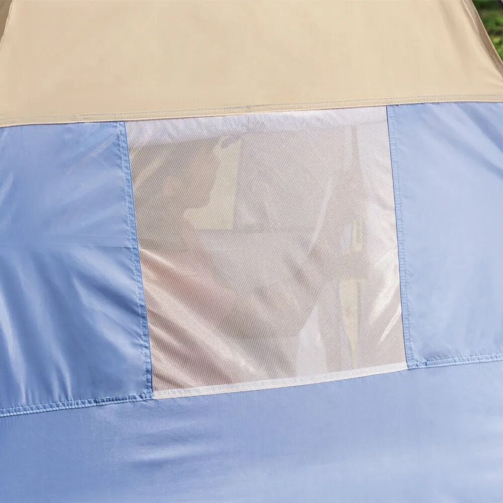 В палатке три окна с маскитками, дверь на замке. Использовали для биотуалета. Был очень сильный ветер на берегу, некоторые палатки повредило, эта устояла - все Ок.