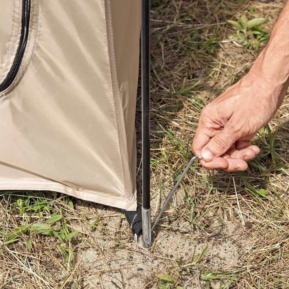 Палатка для туалета-душа понравилась. Плотная, добротно сделана. Есть 3 окна с сетками для проветривания. Пол снимается. Дома собрали с трудом, посмотрим как на природе.