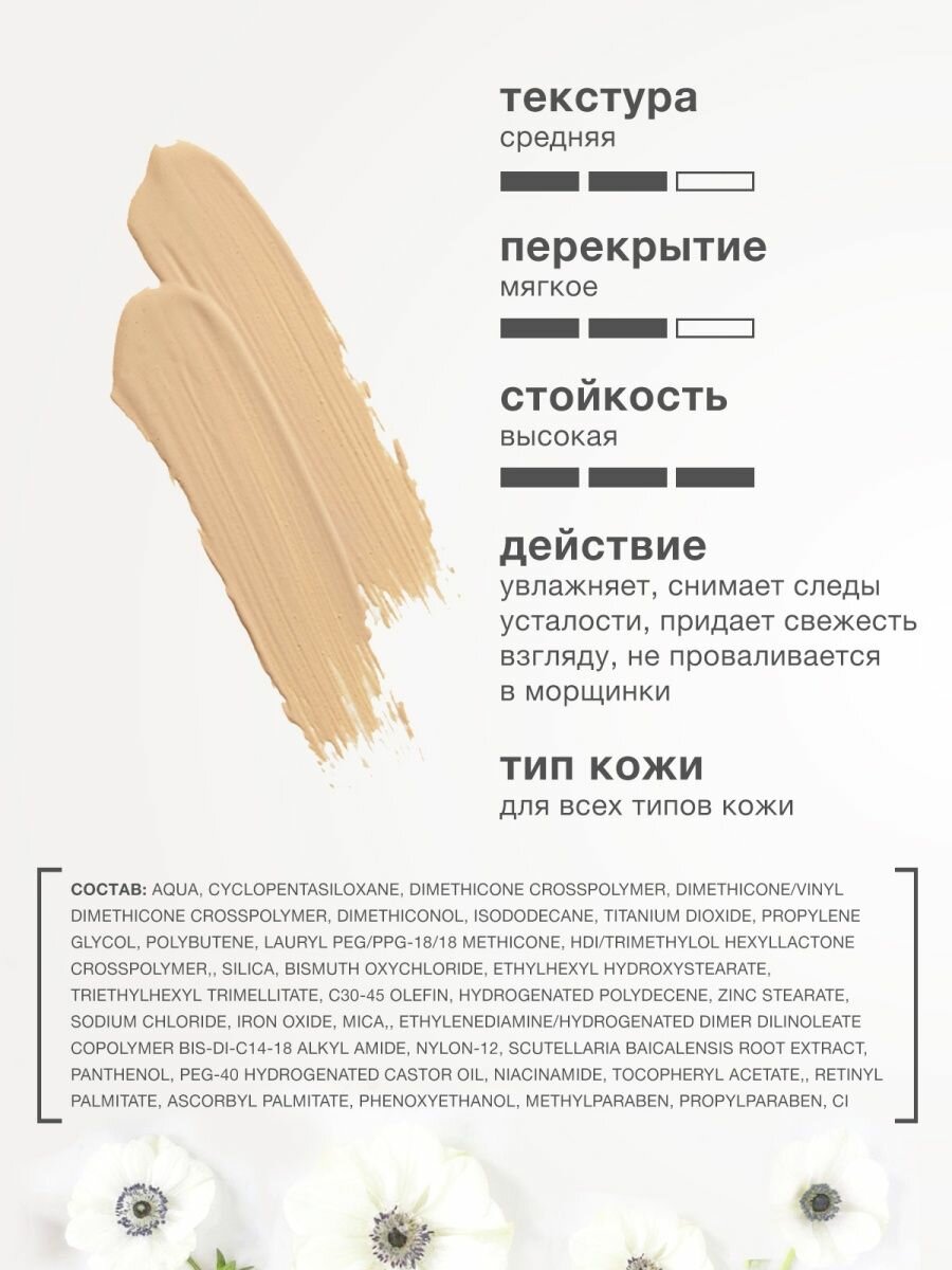| Плюсы: | Хорошо маскирует недостатки под глазами, не сушит кожу вокруг глаз |