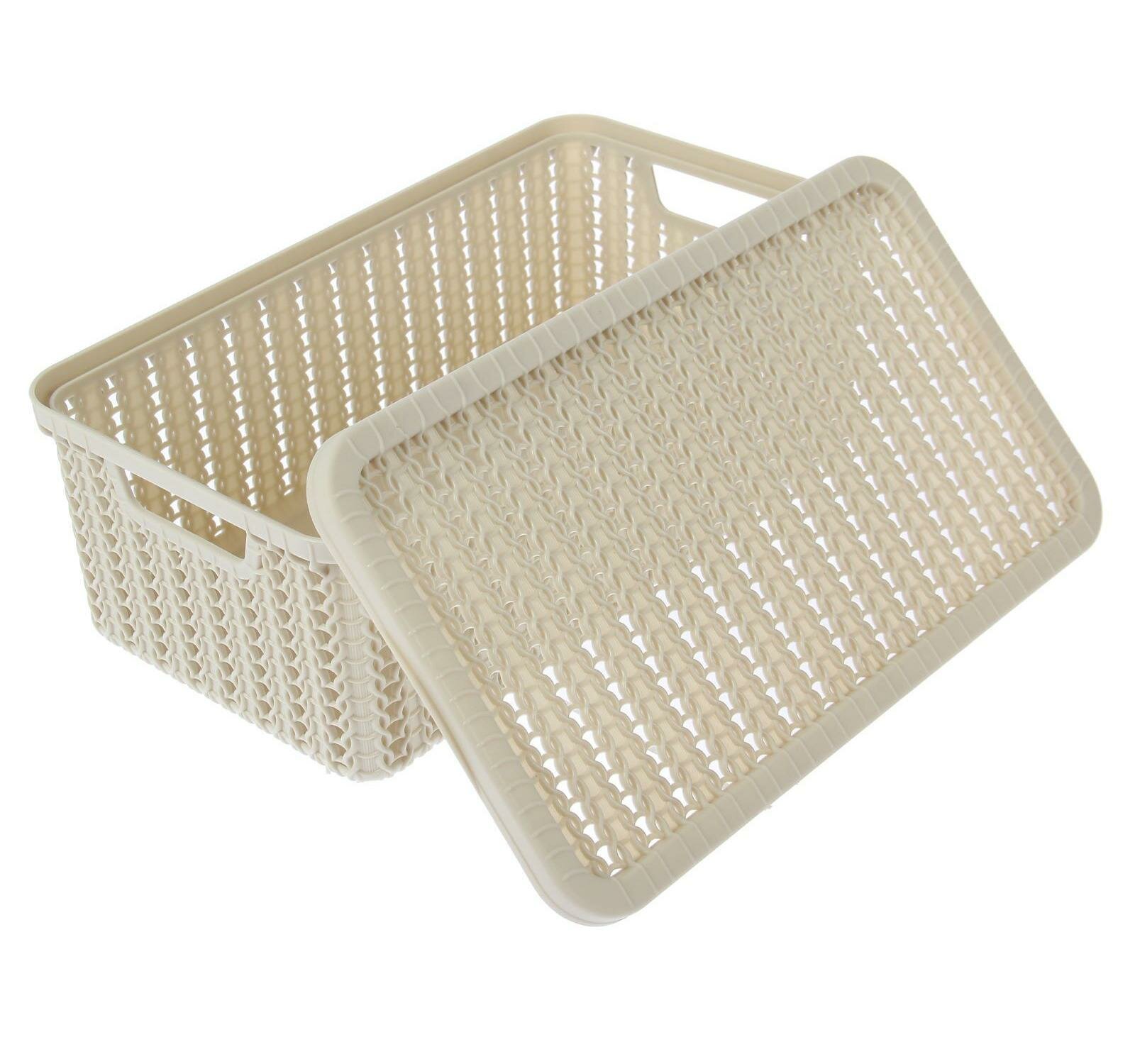 Корзина для хранения, 3 л, прямоугольная, плетеная, пластик, чайная роза, с крышкой, Idea, Вязание, М2369