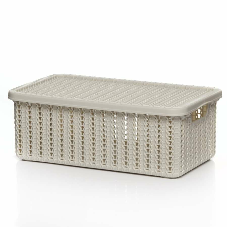 Корзина 3л Вязание с крышкой Белый ротанг М2369 .