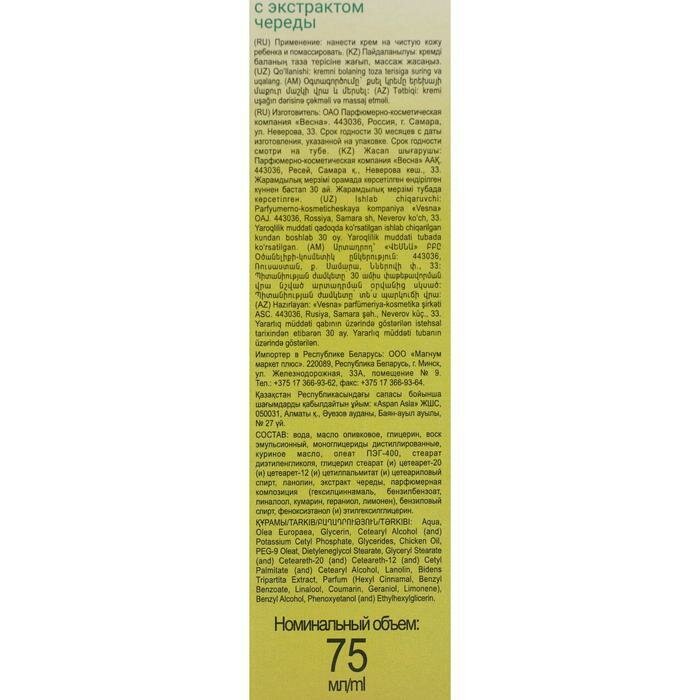 Детский крем для лица и тела весна регенерирующий с экстрактом череды, 75 мл