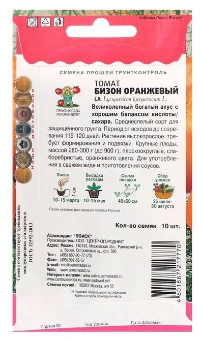 Томат "Поиск" Бизон оранжевый 10шт интересное: