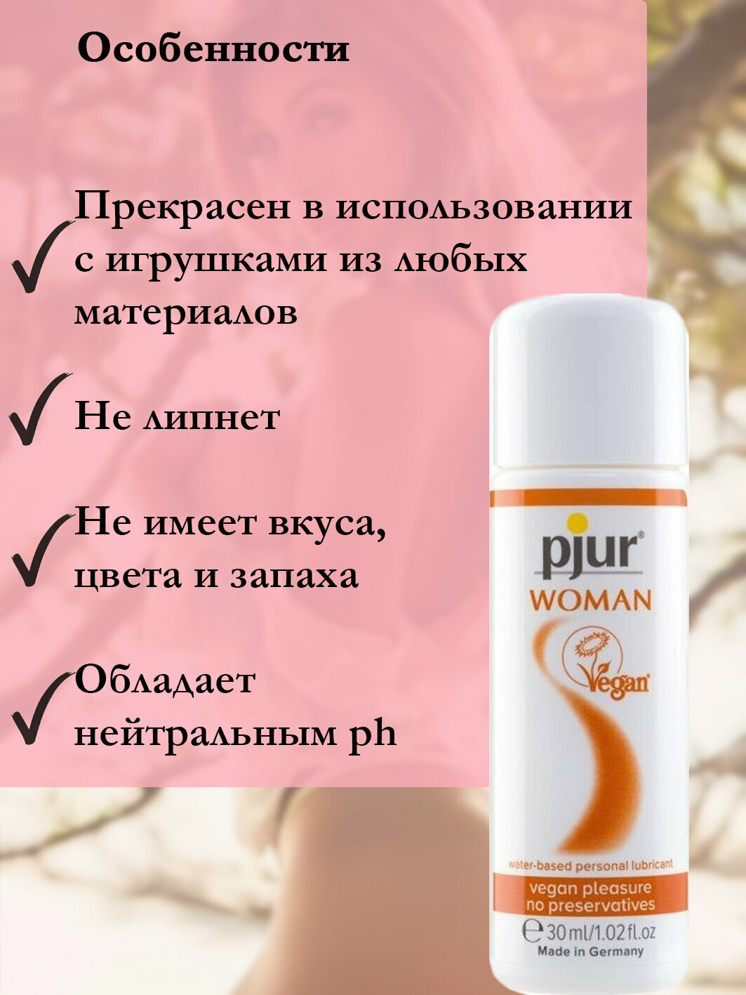 45414 pjur Woman Vegan, 30 мл. Vegan Friendly лубрикант
