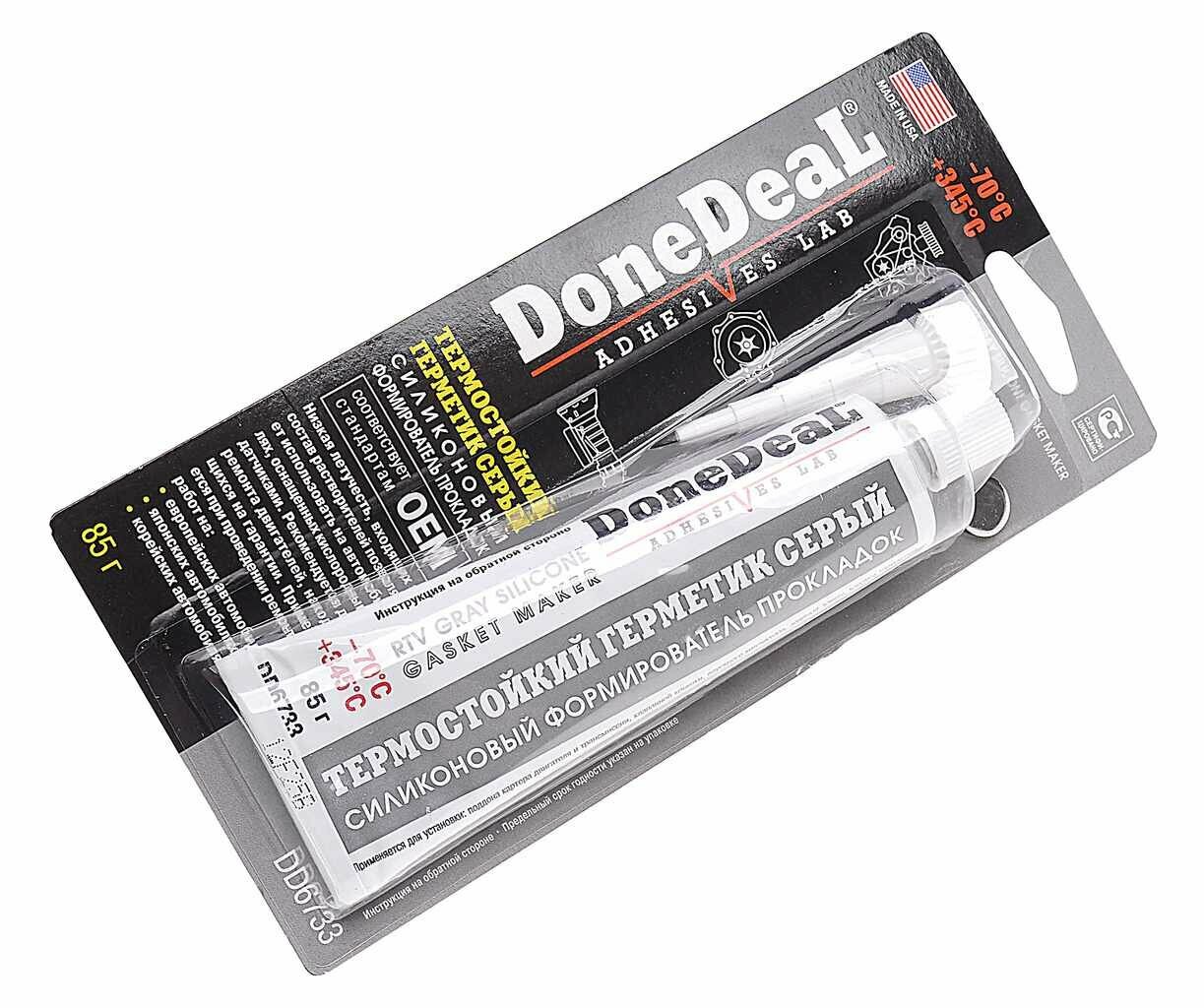 Герметик-прокладка DoneDeal RTV Gray Silicone Gasket Maker, силиконовый, термостойкий, серый, туба 85г, арт. DD6733