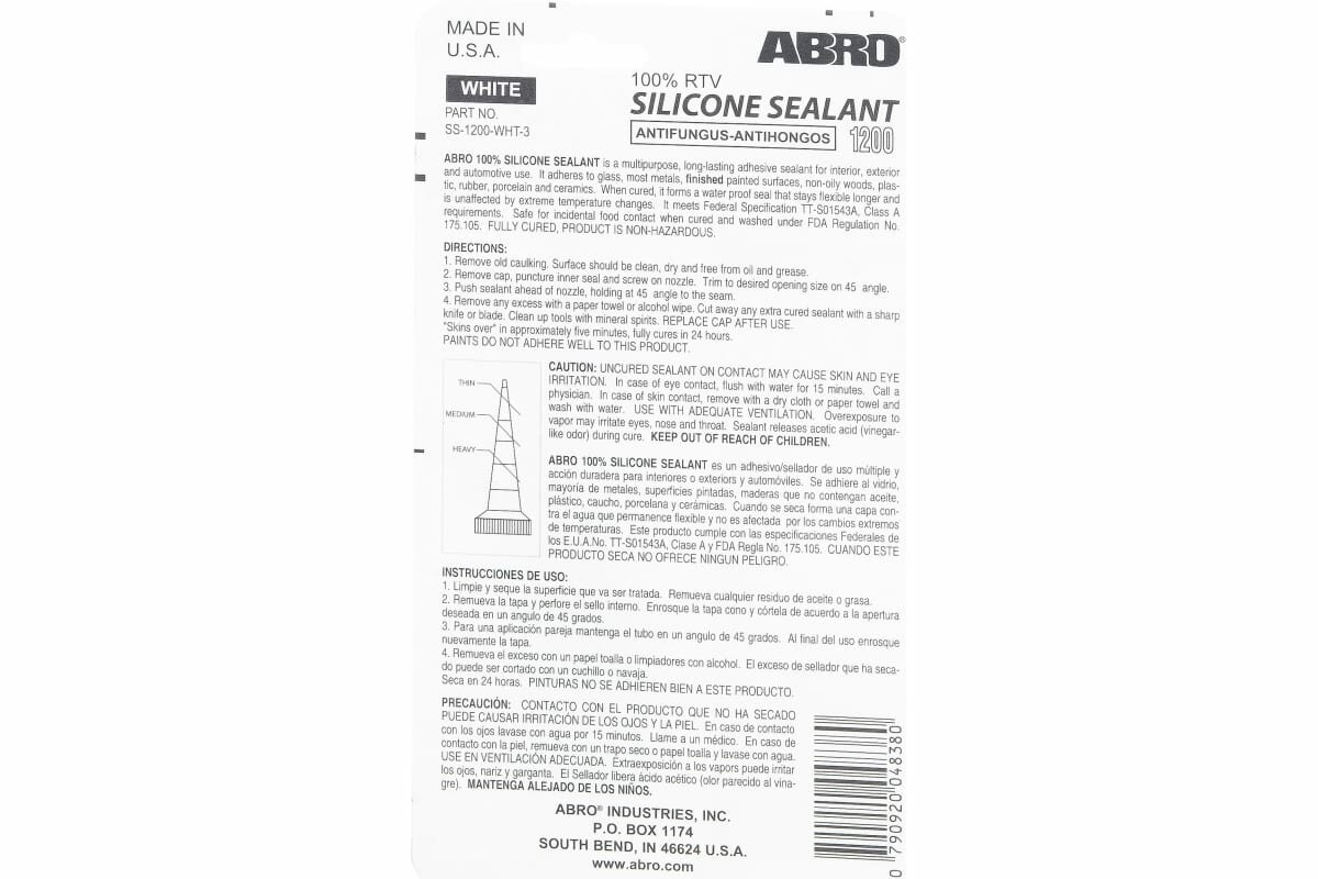 Силиконовый герметик ABRO SS-1200-WHT-3