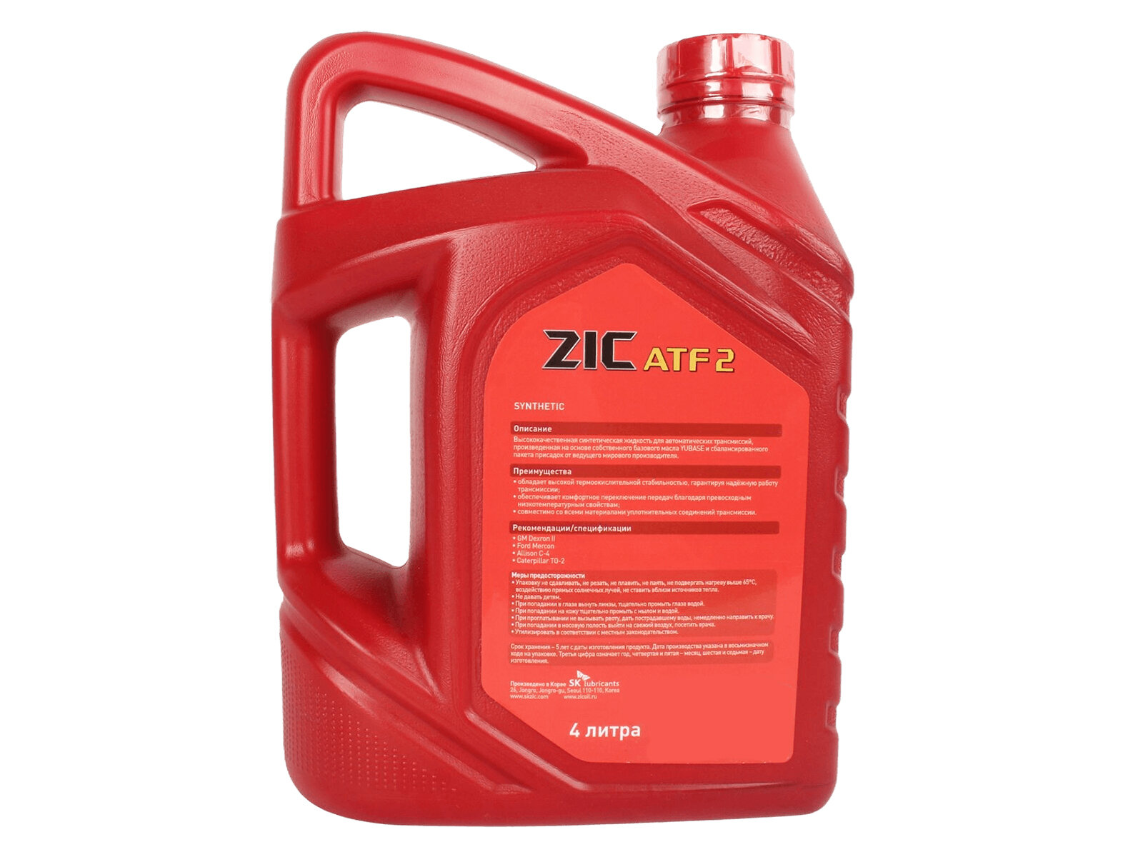 ZIC 162623 ZIC ATF 2 (4L)_жидкость гидравлич. синт! для АКПП\ GM DEXRON II, CATERPILLAR TO-2, ALLISON C-3