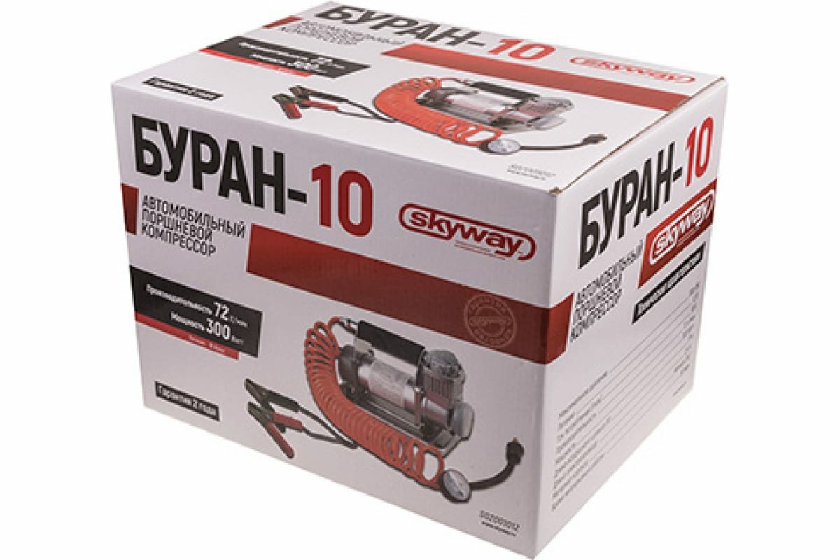SKYWAY S02001012 Компрессор автомобильный 72л/мин. 10атм. 10А 12V на клеммы АКБ Буран-10 SKYWAY