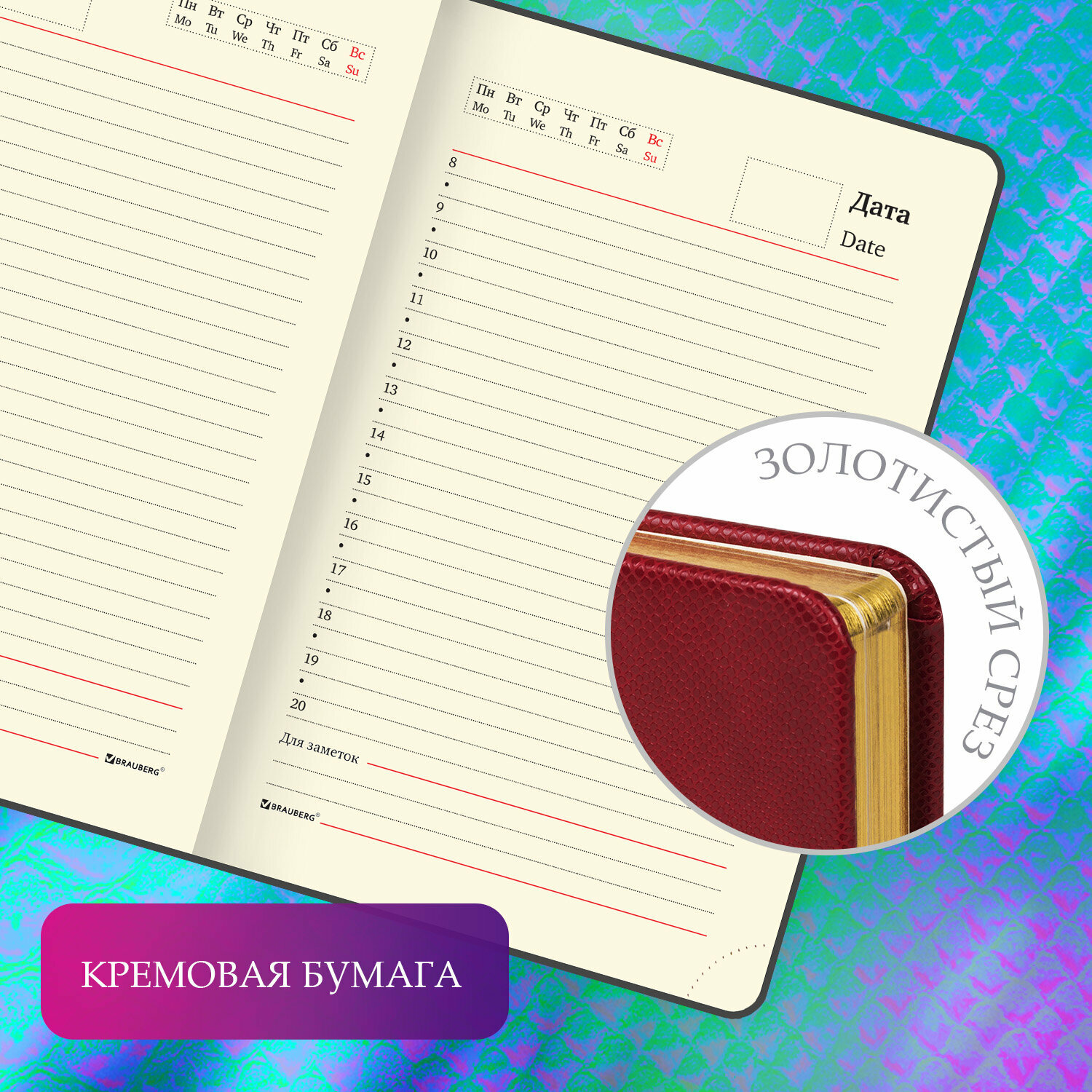 Ежедневник планинг датированный блокнот недатированный малого формата А6 100х150 мм 160 листов, Brauberg Iguana, под кожу рептилий, золотой срез, 125104