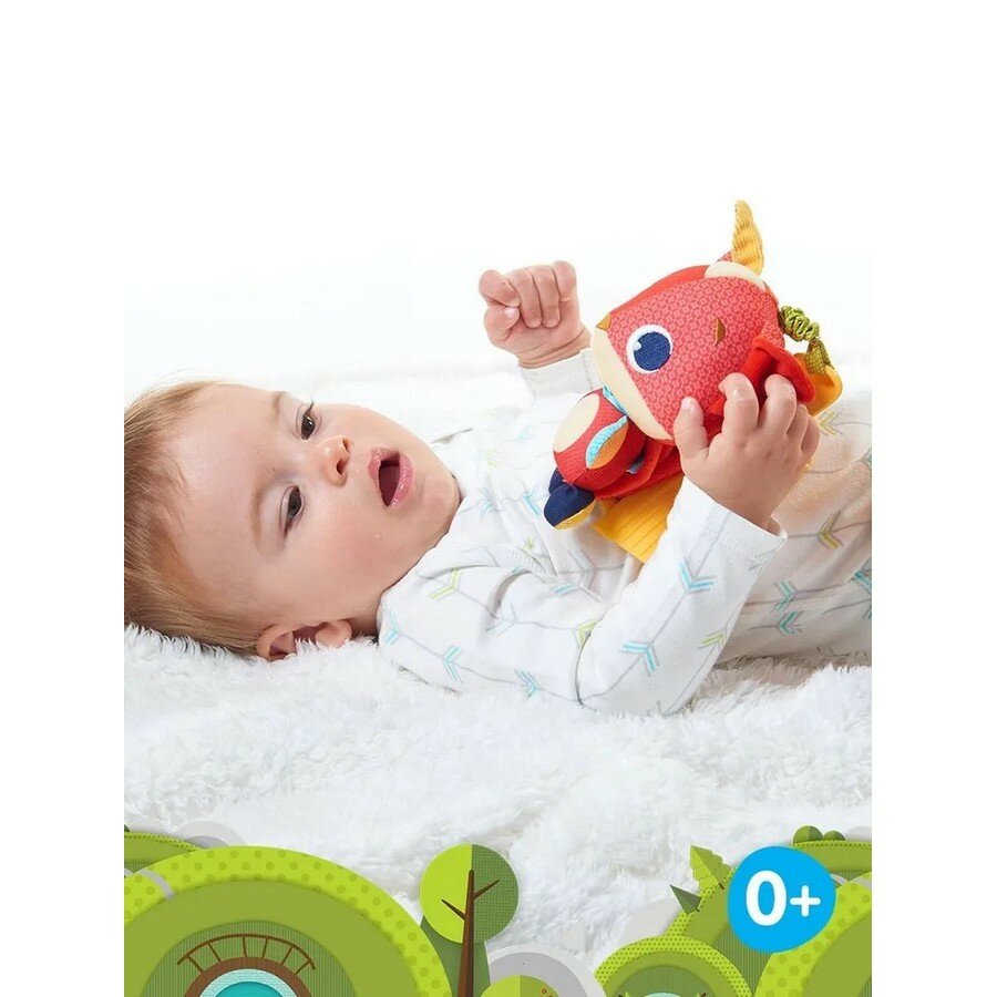 | Плюсы: | Игрушка супер, очень яркая и интересно играть с ней, хвостик шелестит, есть грызунок, удобный карабин для крепления к коляске или кроватке |