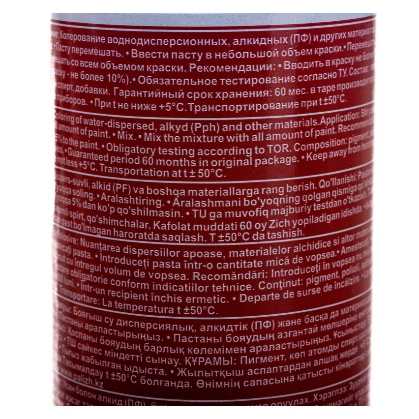 Паста колеровочная универсальная PALIZH, колер для краски, эмали, лака, слива 100 мл