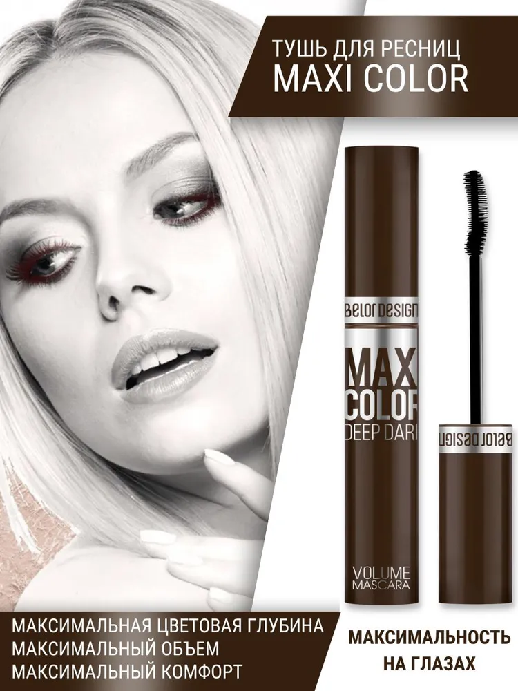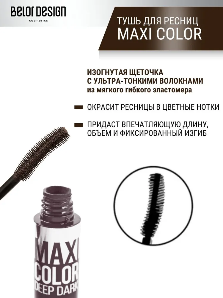 BELOR DESIGN Тушь для ресниц объемная Maxi Color, 12,3 гр, Шоколадная