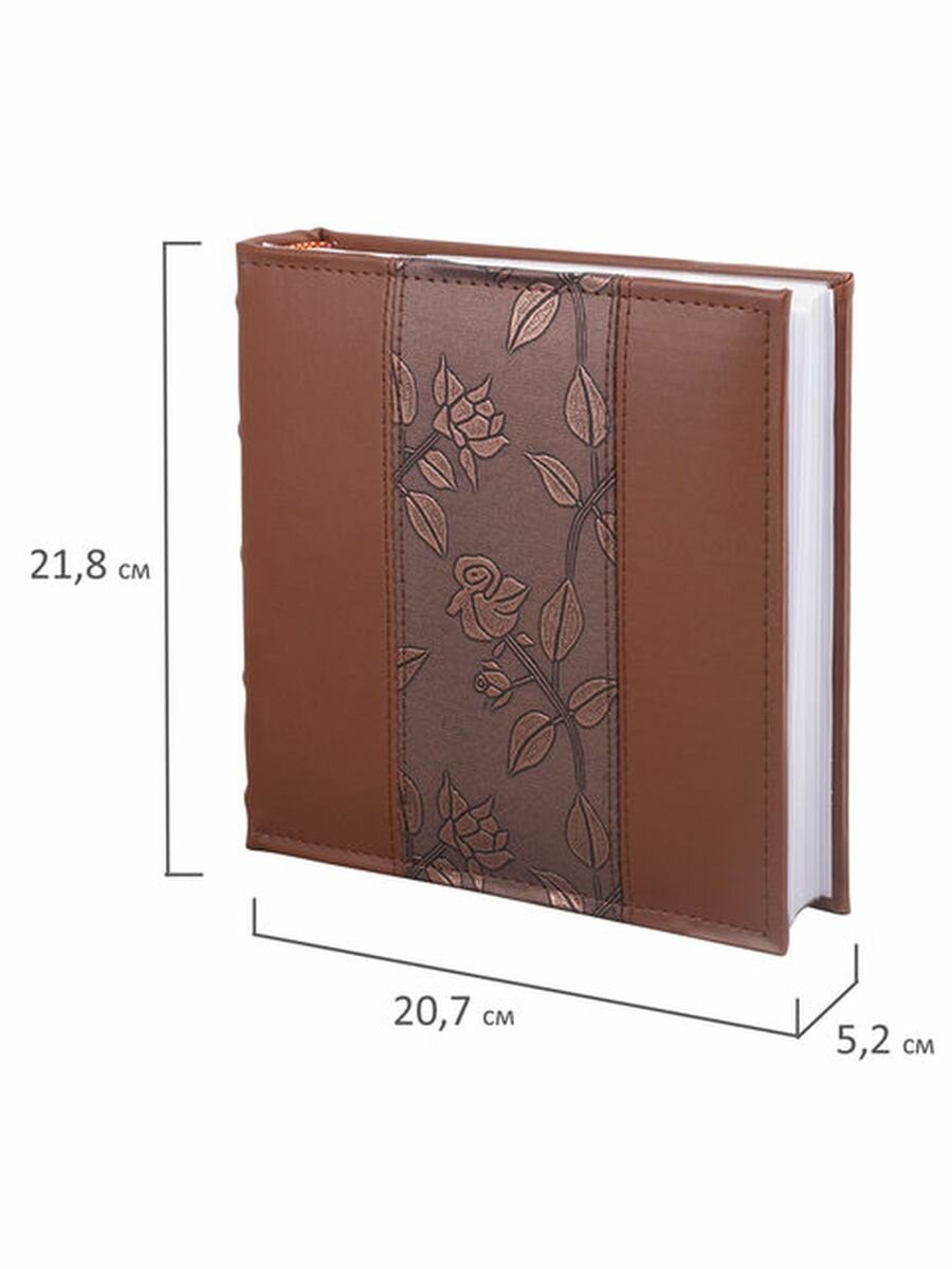 Фотоальбом BRAUBERG на 200 фото 10х15 см, бумажные страницы, классический, обложка под кожу, коричневый, 390483