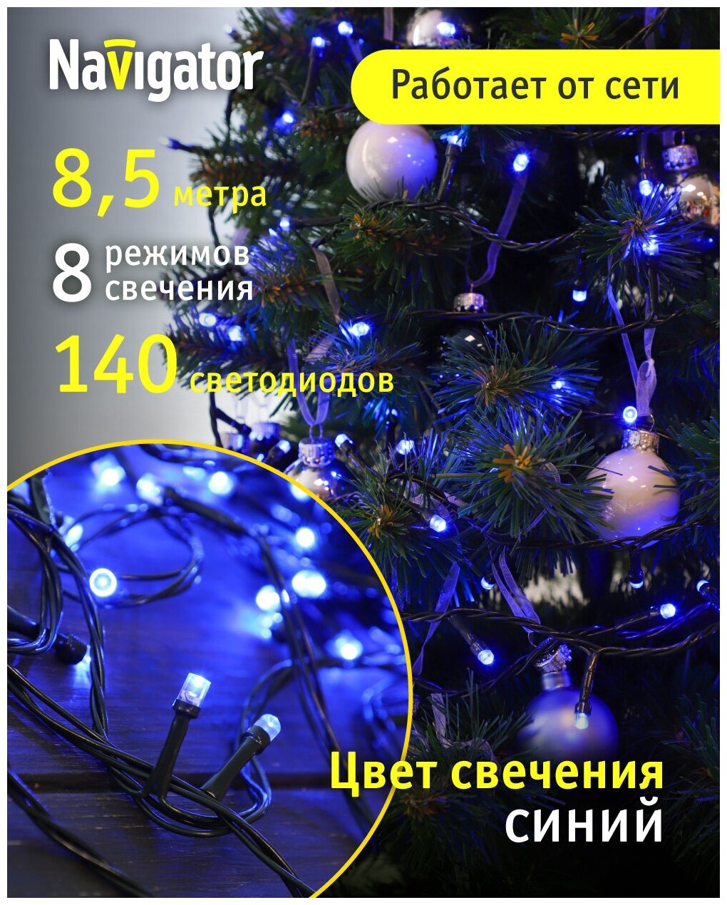 Гирлянда новогодняя светодиодная NGF-S01-140RGBY-5-8.5m-230-C8-G-IP20 (61814 NGF-S01) | код. 21256 | Navigator Group ( 1шт. )