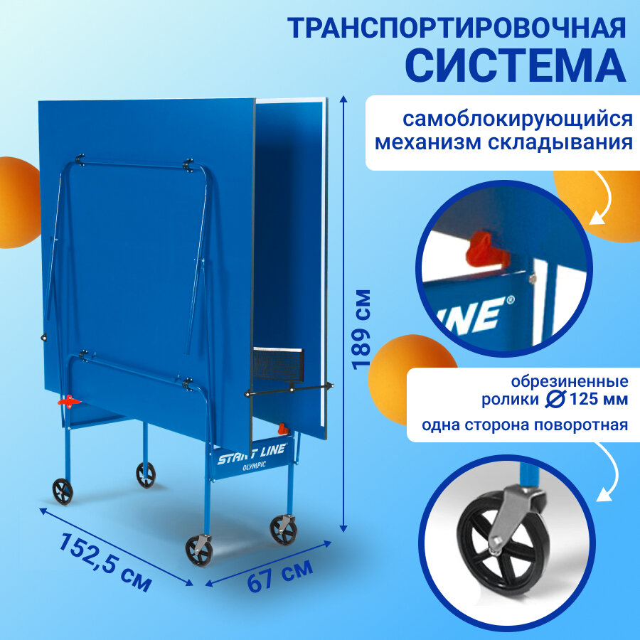 Теннисный стол Start Line Olympic BLUE, любительский, для помещений, складной, с сеткой