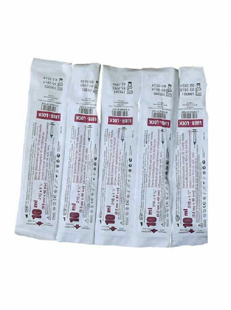 Шприц одноразовый стерильный трехкомпонентный, 10 мл, 5 шт.