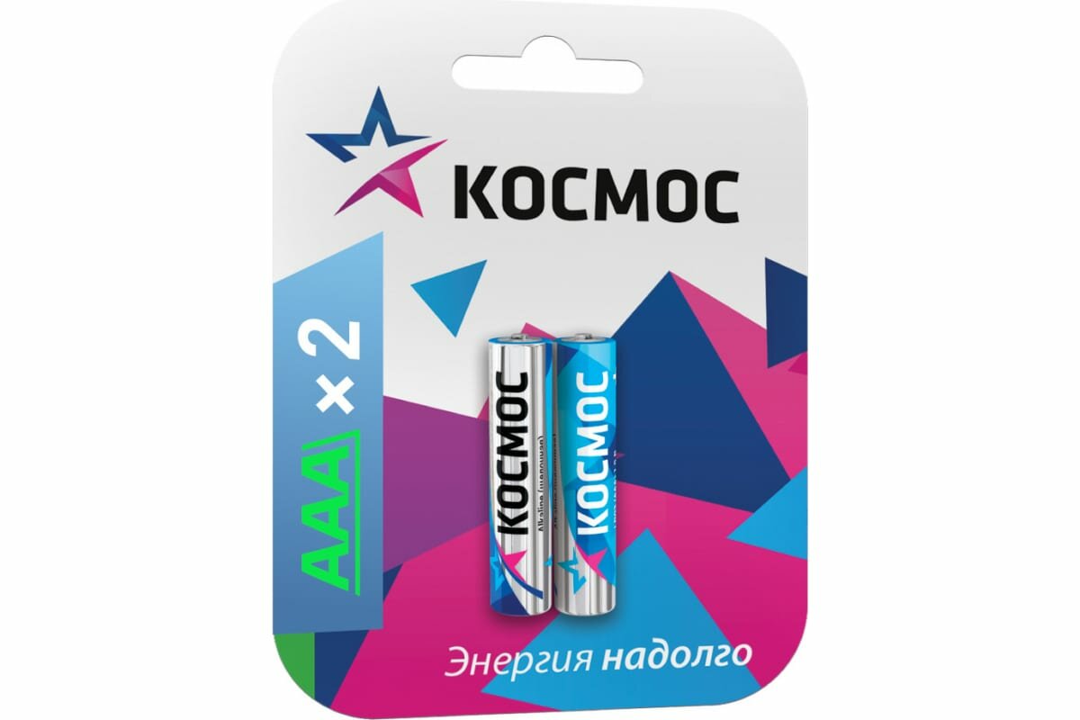 Батарейки ААА мизинчковые Космос, алкалиновые 2 шт в одном блистере, LR03