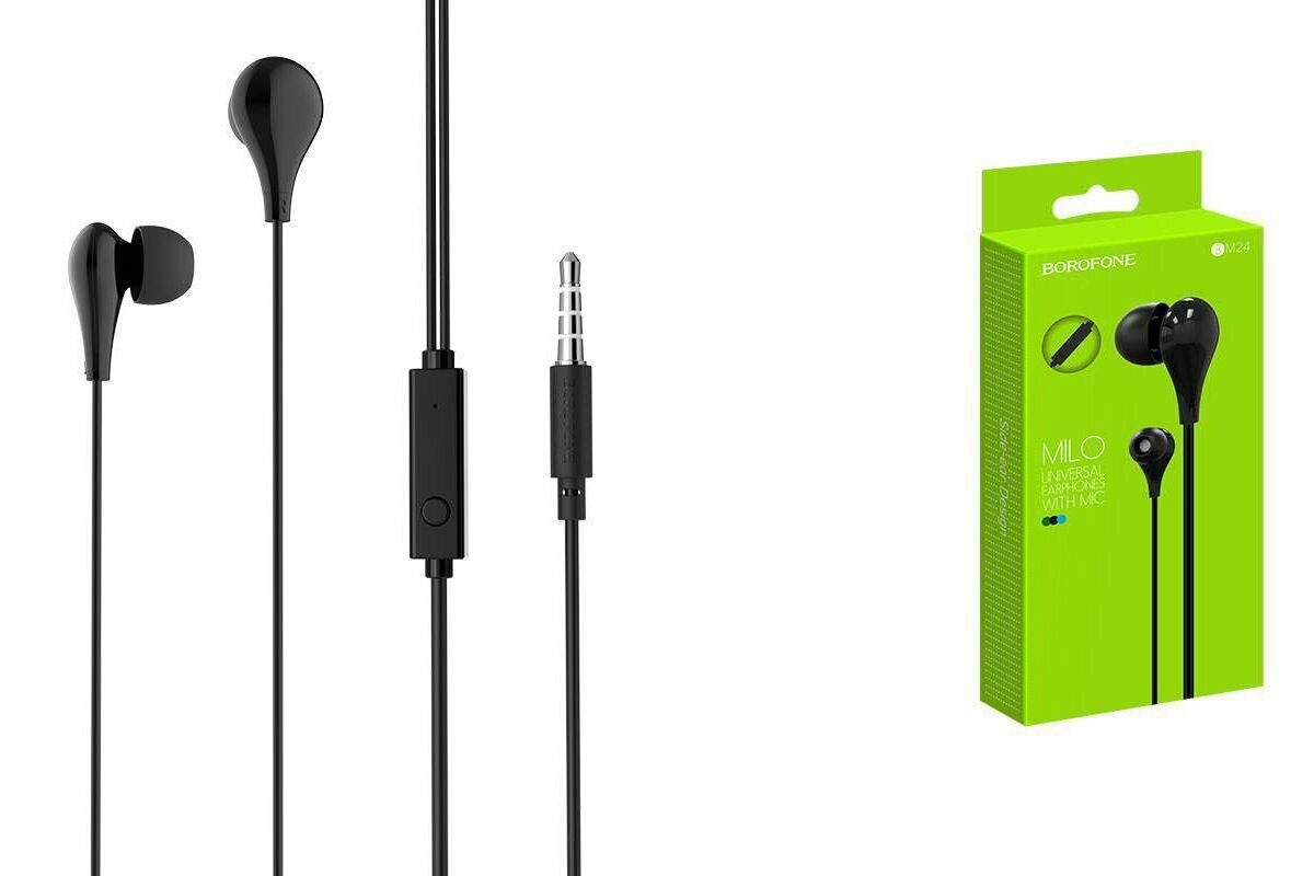 Гарнитура BOROFONE BM24 Milo 3.5 мм, вставная, 1.2м (черный), шт BM24