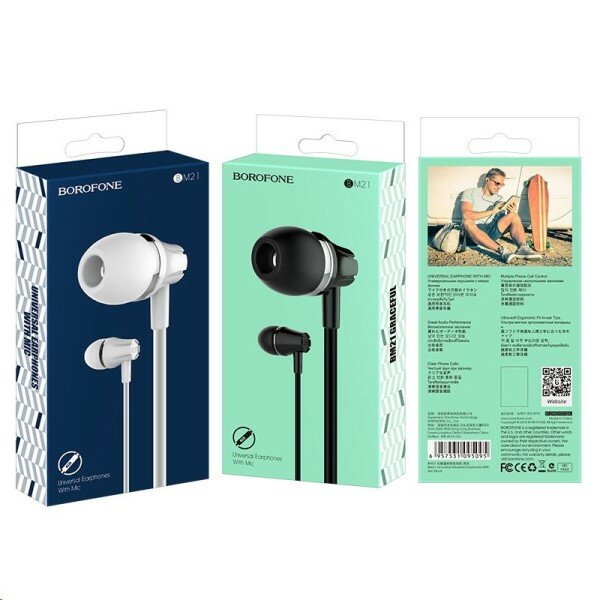 Наушники Borofone M21 Graceful, вакуумные, микрофон, Jack 3.5 мм, кабель 1.2 м, белые
