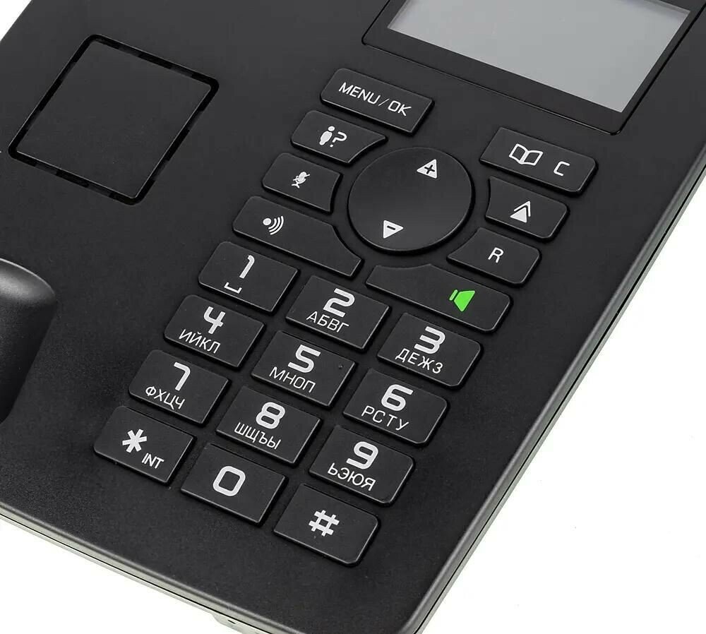 Богатая функциональность -- база, которая должна работать без электричества, громкая связь на базе, радиотрубка с отдельной подставкой-зарядкой. |