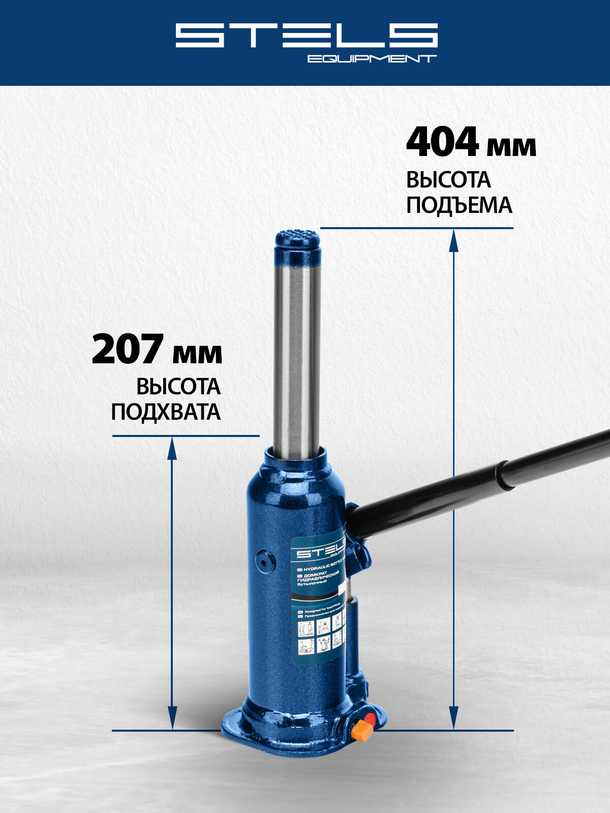Домкрат гидравлический бутылочный, 6 т, h подъема 207-404 мм, STELS 51164