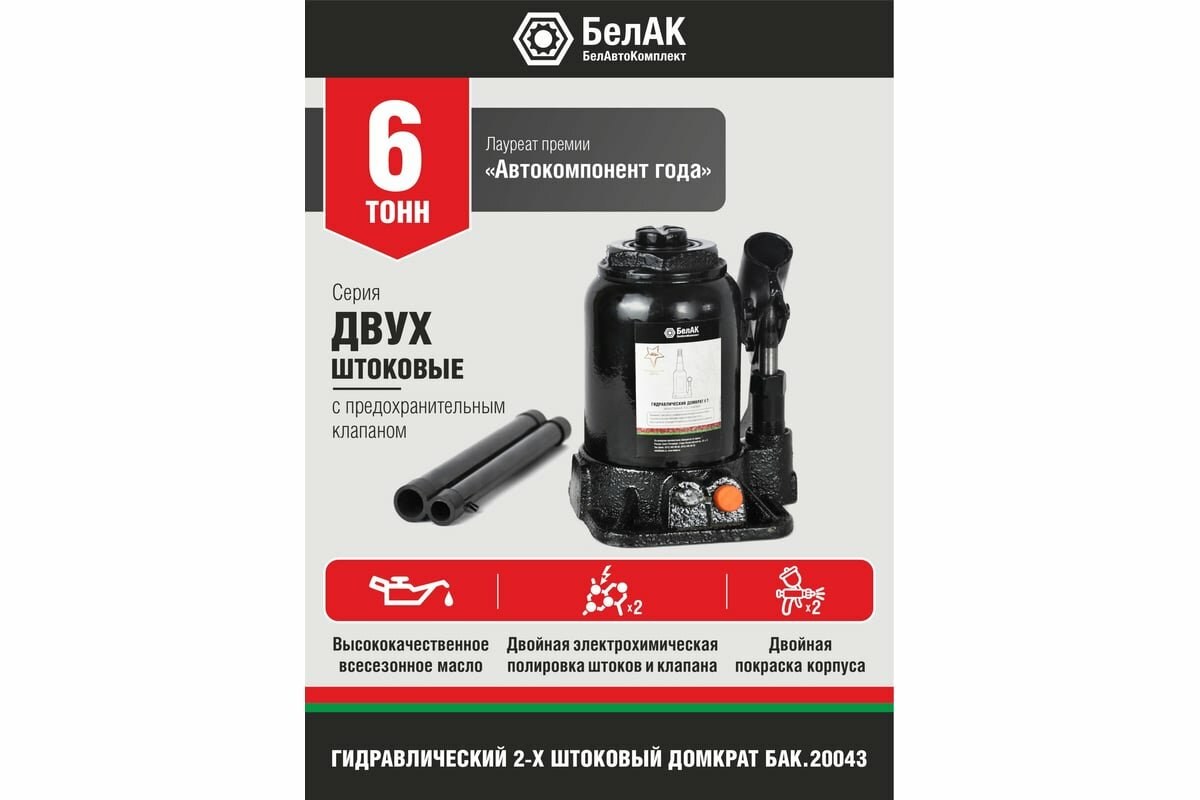Купить Домкрат Гидравлический 6т Двухштоковый Белавтокомплект Под Заказ БелАК арт. БАК.20043