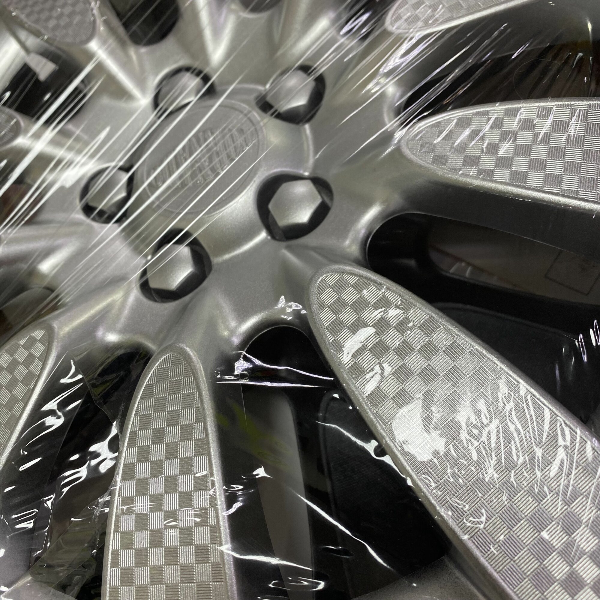 Колпаки R13 4шт на колеса авто карат р13, на диски радиус 13 дюймов, цвет серый, карбон.