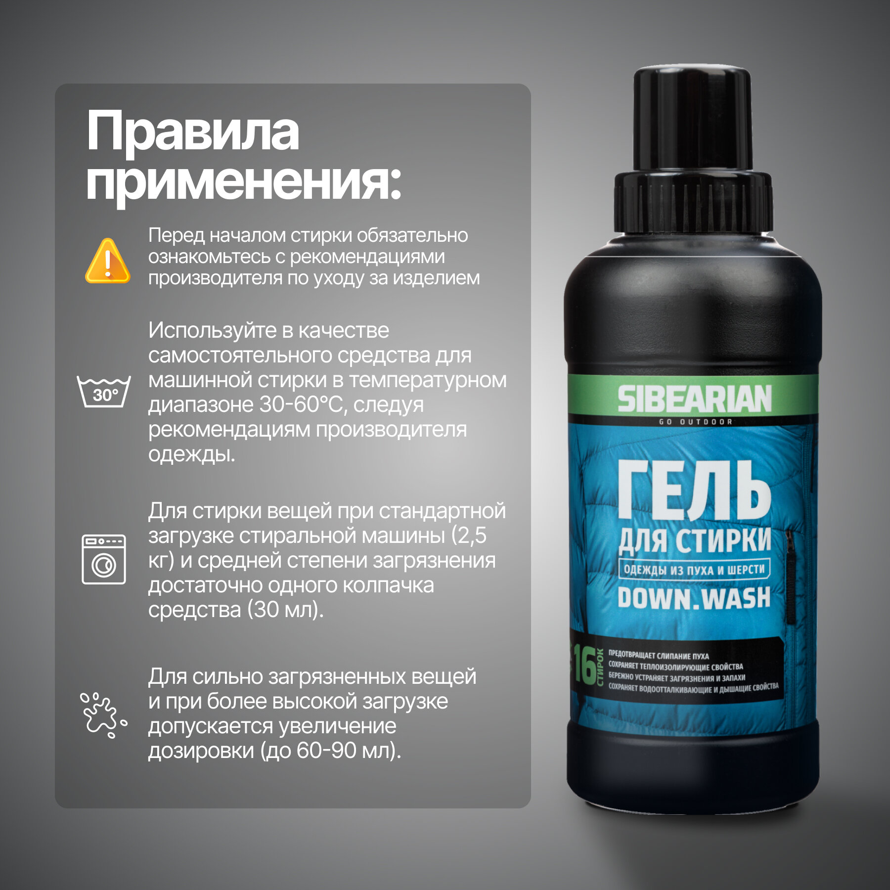 Гель для стирки пуховиков, курток и одежды из шерсти, подушек, одеял SIBEARIAN DOWN WASH 500 мл