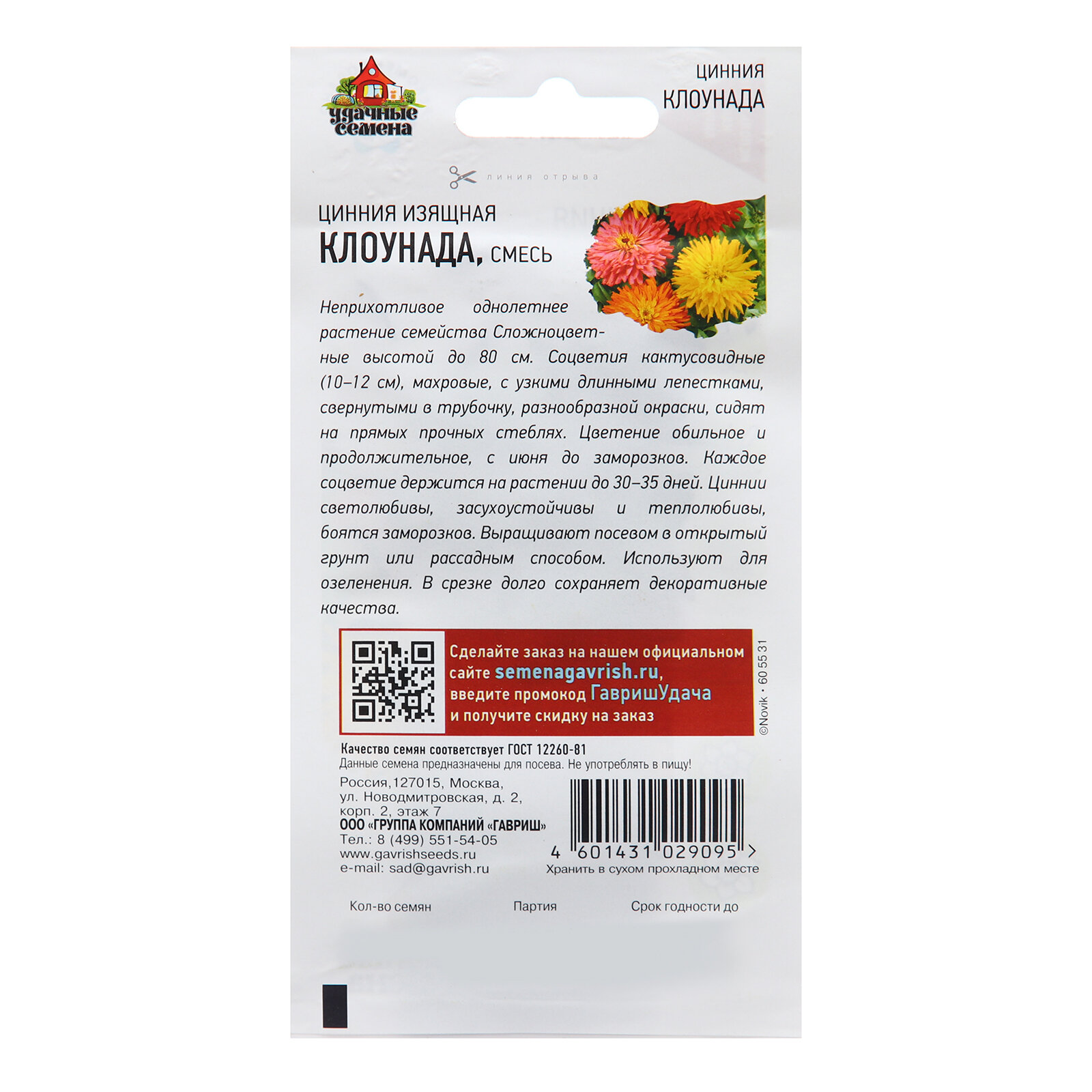 Семена Цинния "Клоунада", 0,5 г интересное: