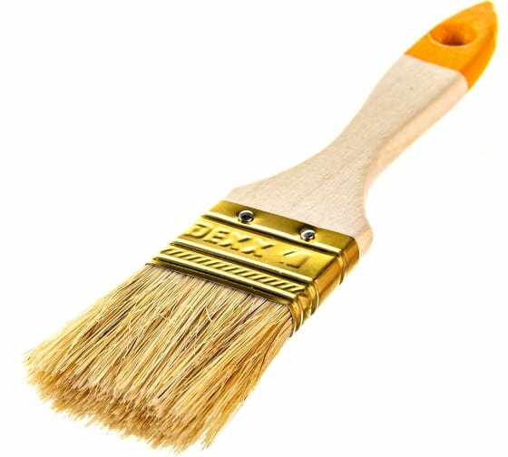Кисть плоская DEXX, натуральная щетина, светлая натуральная щетина, деревянная ручка, 1 1/2"/38мм