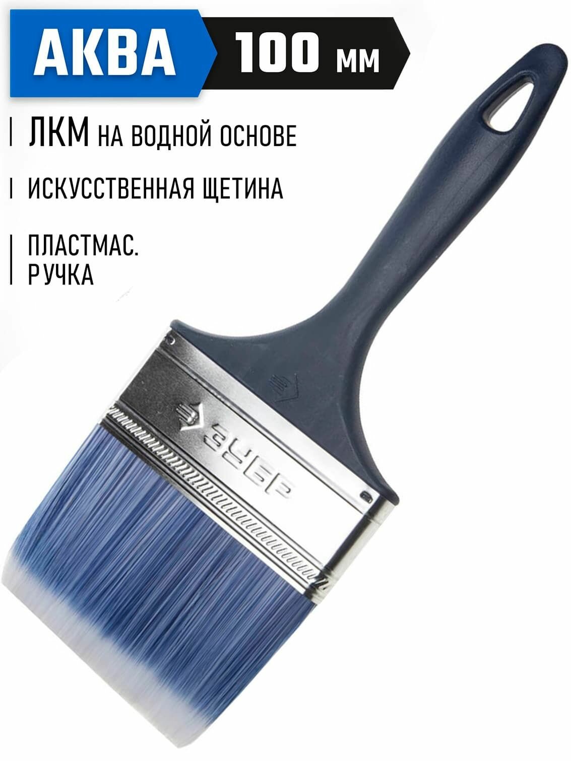 Малярная плоская кисть ЗУБР Аква 100 мм 4'' искусственная щетина пластмассовая ручка ( 4-01013-100 )