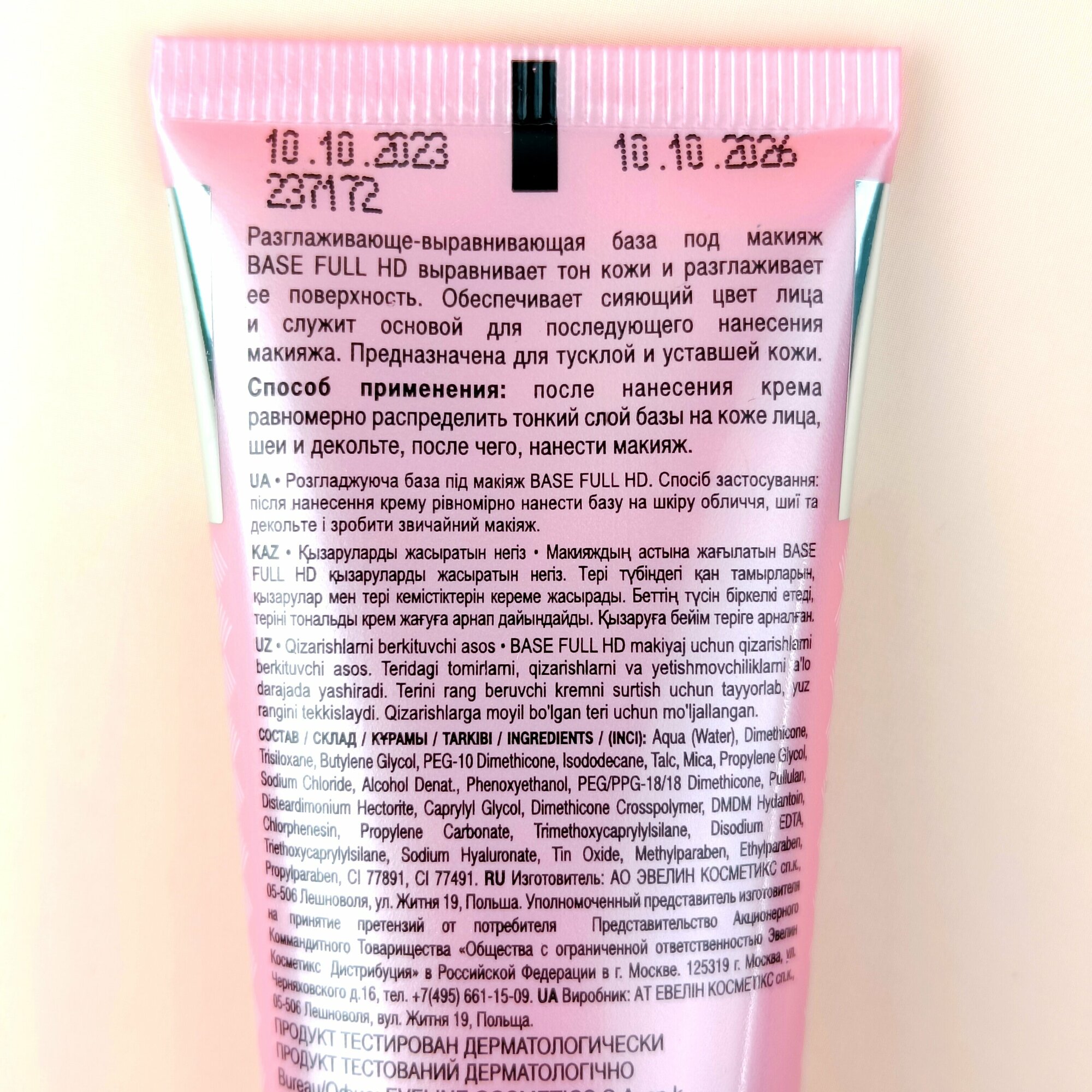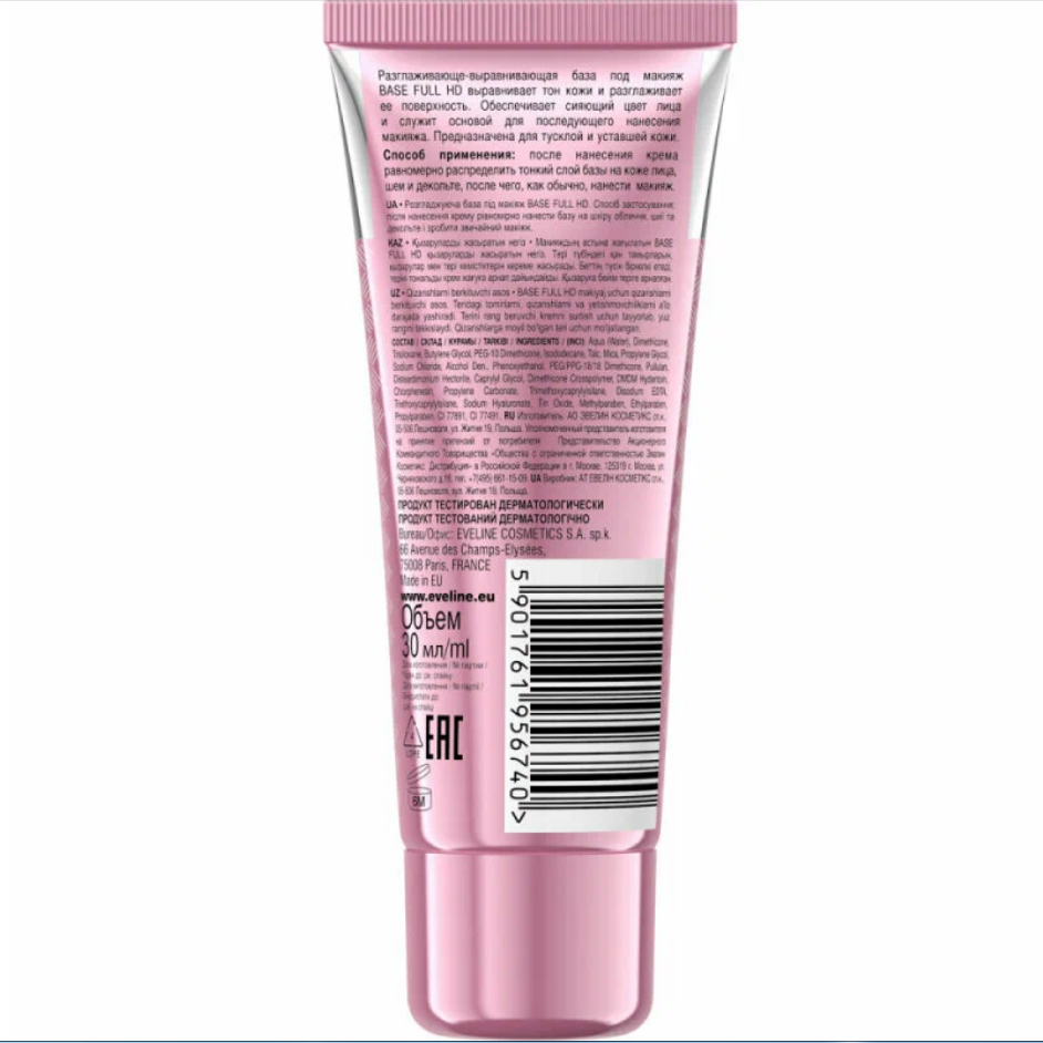 База под макияж EVELINE «BASE FULL HD», разглаживающе-выравнивающая, 30мл