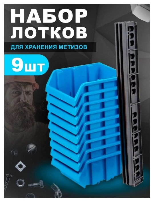 Набор лотков для метизов с планкой (синий, 9 шт) BR3743-ТУТ