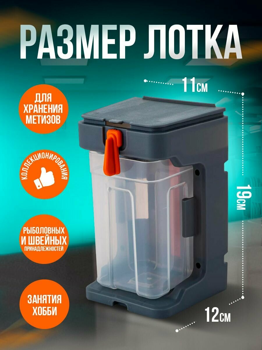 Органайзер Expert универсальный со съемным прозрачным боксом для строительных аксессуаров метизов гвоздей 1 лоток модуль с подставкой, крепеж на стену